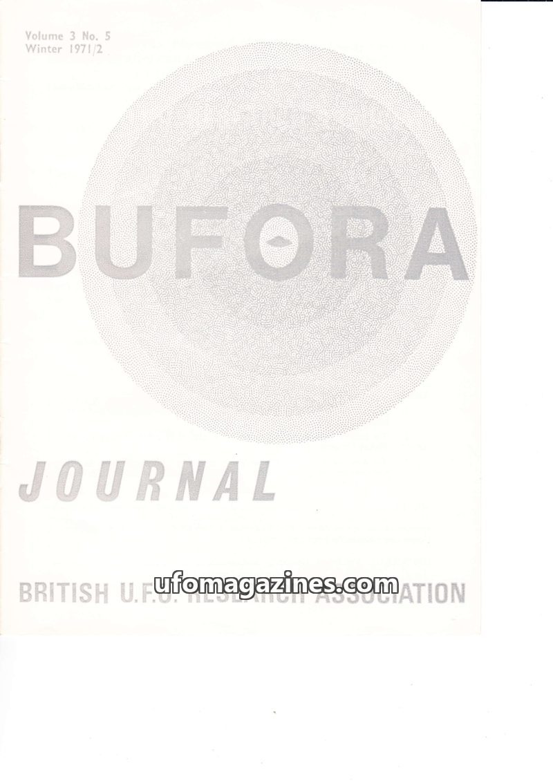 This issue of the BUFORA Journal (Vol 3, No 2, Winter 1970/71) explores various aspects of UFO research. An editorial questions the extraterrestrial hypothesis, suggesting a modifi