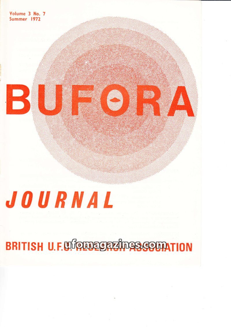 This issue of the BUFORA JOURNAL, Volume 3, No. 7 from Summer 1972, covers various aspects of UFO research. The editorial discusses the dual nature of UFO sightings, suggesting a c