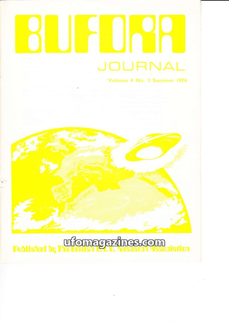 This issue of BUFORA JOURNAL, published in Summer 1974, focuses on UFO sightings and contact experiences within the UK. It includes detailed accounts of the Mr. Lancashire case fro