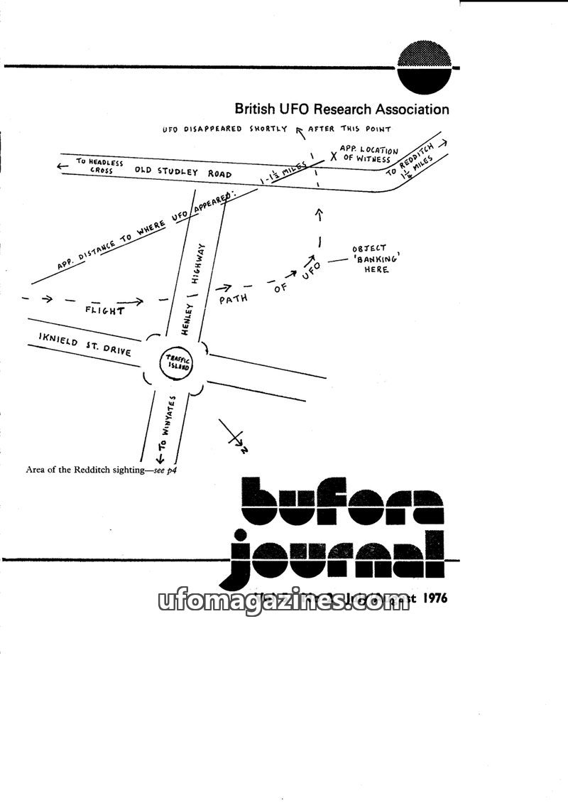 This issue of BUFORA JOURNAL (July/August 1976) details the Redditch UFO sighting by photographer Paul S Felton, including his observations and photographs. It outlines BUFORA's se