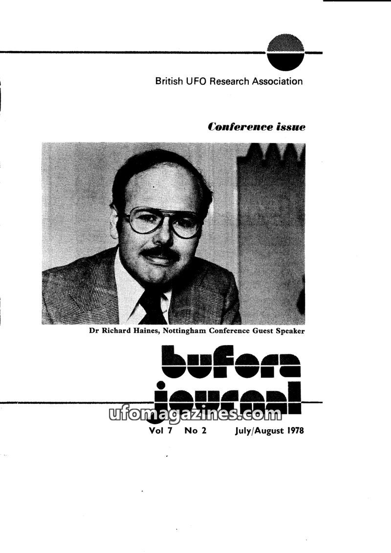 This issue of Bufora Journal (May/June 1978) covers various UFO-related topics, including a report on the Bufora Conference in Nottingham, book reviews, and an editorial discussing