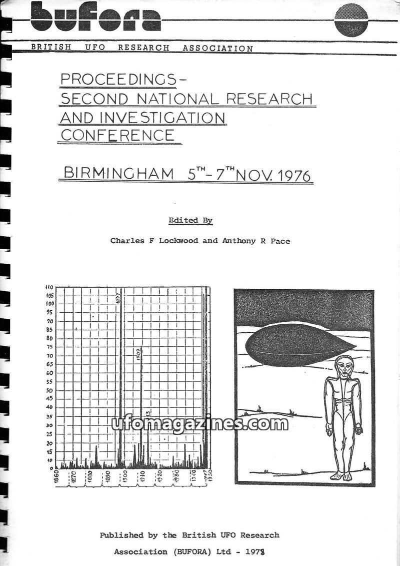 This document contains the proceedings of the British UFO Research Association (BUFORA) conference held in Birmingham from November 5th-7th, 1976. The conference aimed to promote s