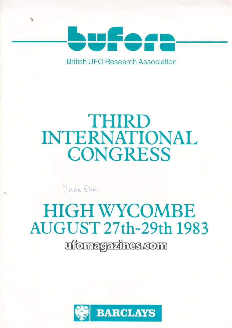 The British UFO Research Association (BUFORA) held its 3rd International UFO Congress from August 27-29, 1983, in High Wycombe, Buckinghamshire, at the Lorch Foundation and Lane En