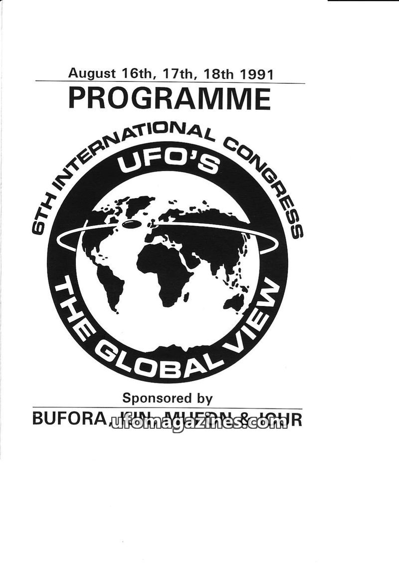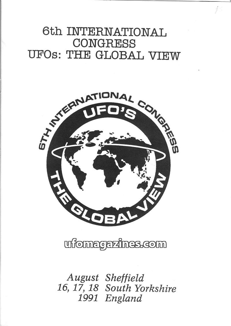 This issue is a program or proceedings from the 6th International Congress on UFOs: The Global View, held in Sheffield, England, from August 16-18, 1991. It highlights various orga