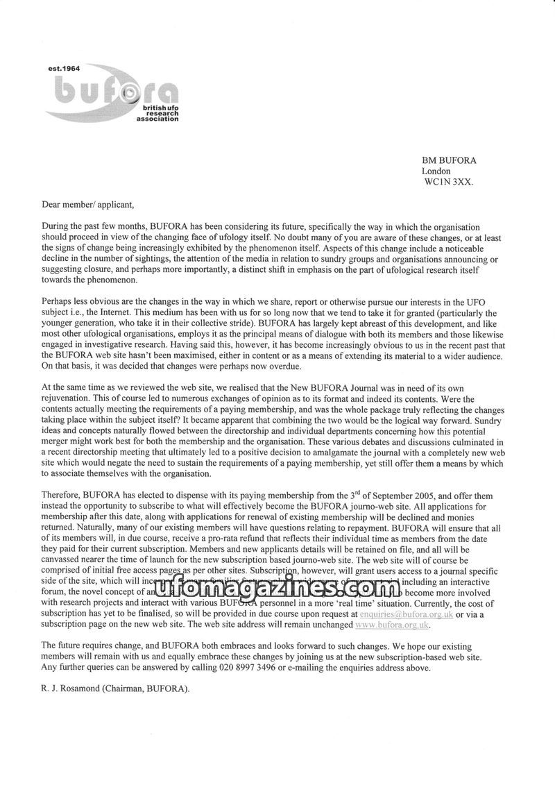 BUFORA has undergone a major restructuring, ceasing its traditional paid membership model from September 3rd, 2005. This change involves amalgamating its bi-monthly journal with a