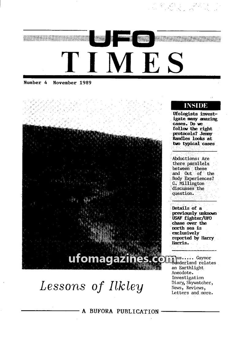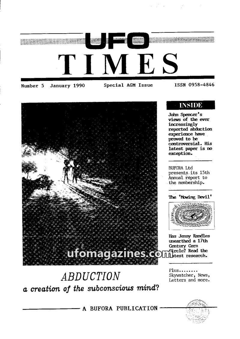 This issue of UFO Times delves into four abduction/contactee case studies investigated by BUFORA and IUN, including Gary Harlow, David Rogers, Patricia Mee, and Graham Allen. It al