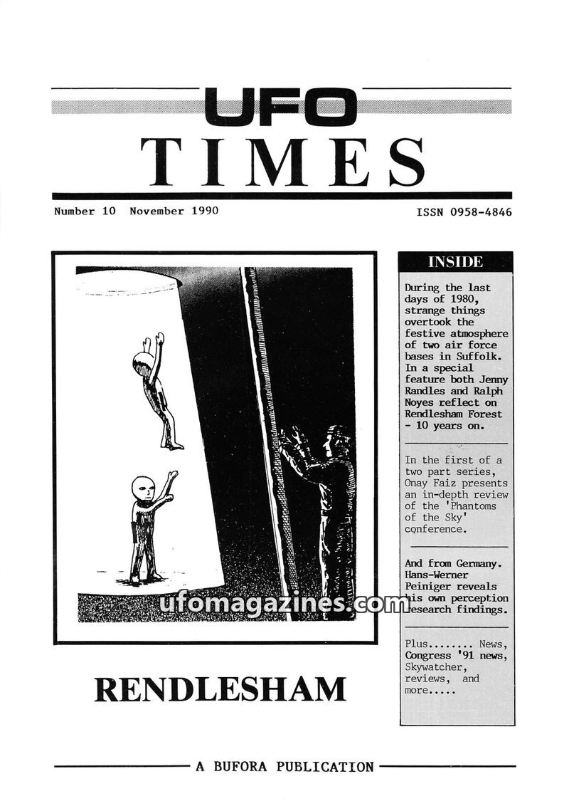 This issue of UFO Times focuses heavily on the Rendlesham Forest incident, marking its 10th anniversary. Articles by Jenny Randles and Ralph Noyes reflect on the events of December