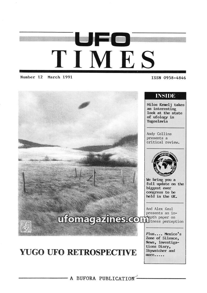 This issue of UFO Times (March 1991) delves into the history of ufology in Yugoslavia, detailing waves of sightings from 1954 to 1988, and the development of local research organiz