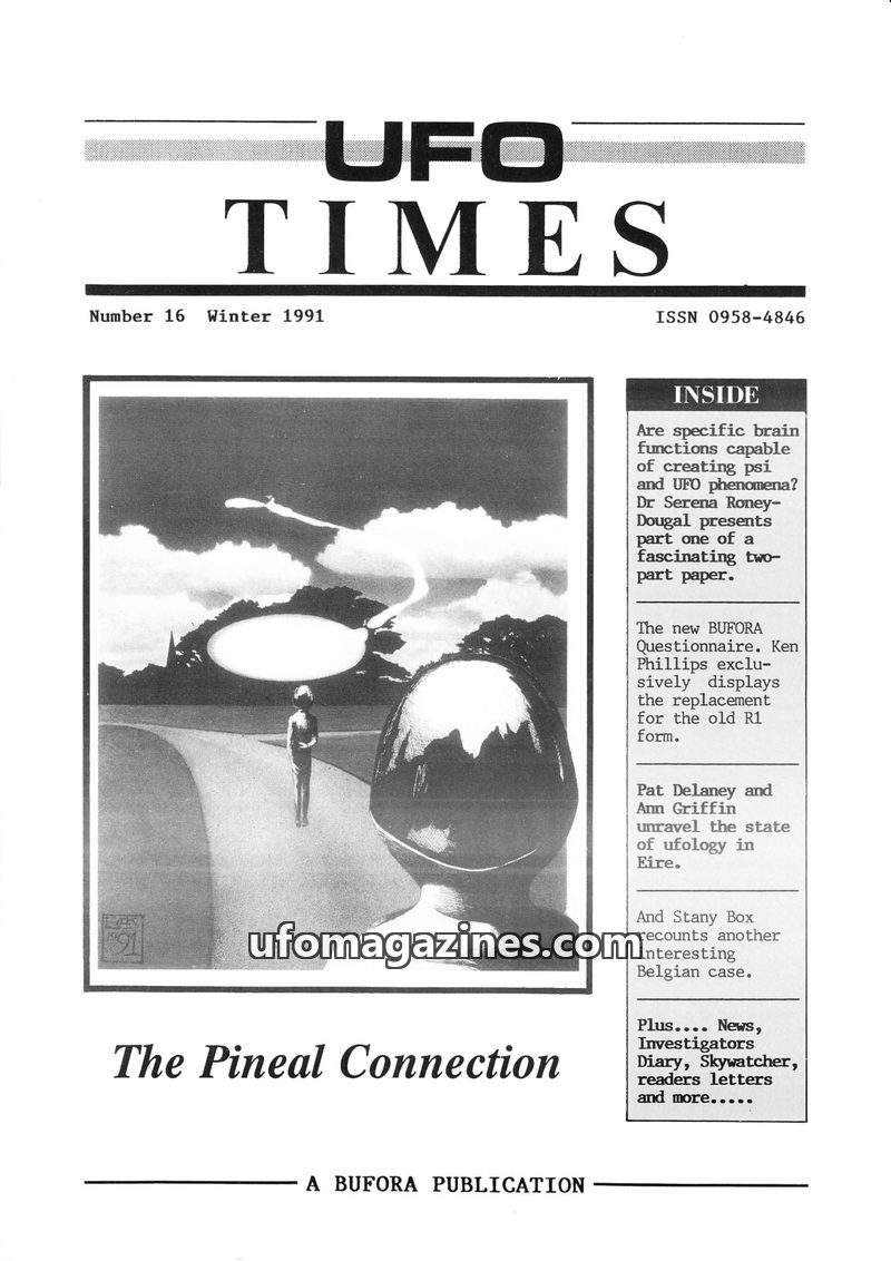 This issue of UFO Times, Winter 1991, delves into the complex relationship between the pineal gland, consciousness, and psi phenomena. Dr. Serena Roney-Dougal's two-part paper, 'UF