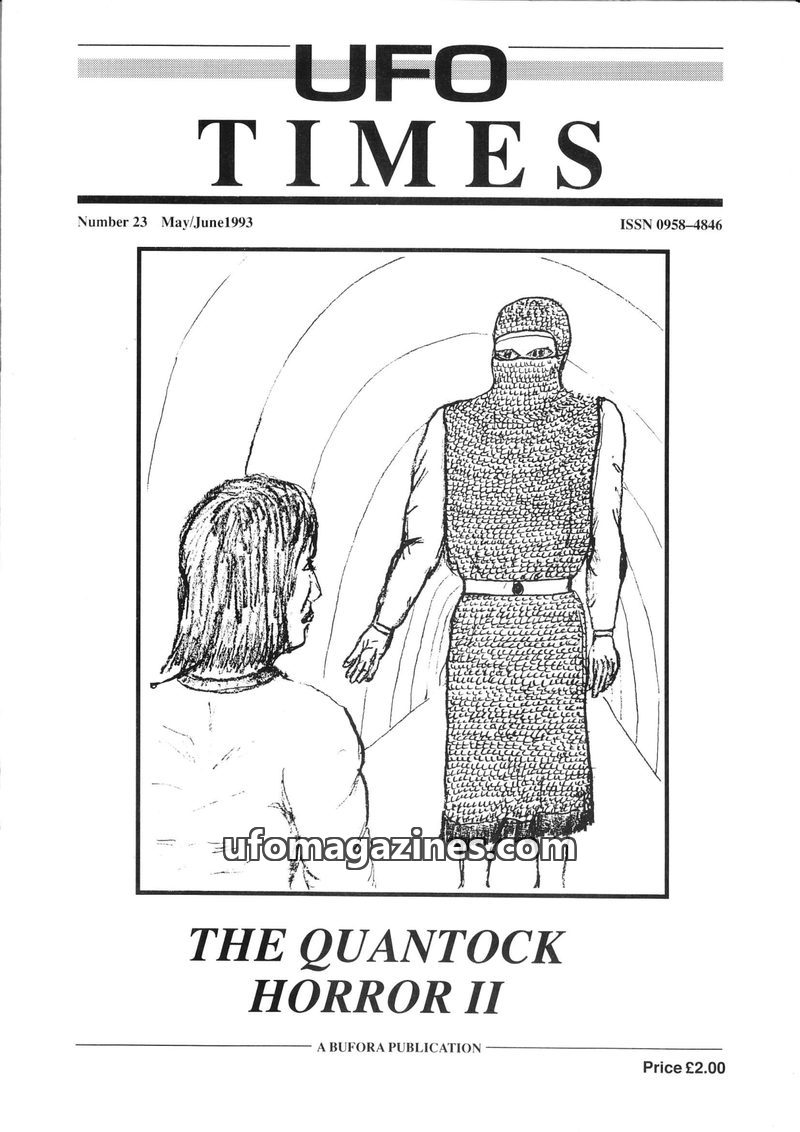 This issue of UFO Times focuses on 'The Quantock Horror II' and features a transcript of an interview with Tony and Susan Burfield detailing their UFO experiences, including a sigh