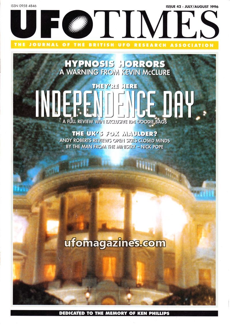 This issue of UFOTIMES features an obituary for Ken Phillips, a dedicated ufologist. It delves into the controversial use of hypnosis in recovering abduction memories, questioning