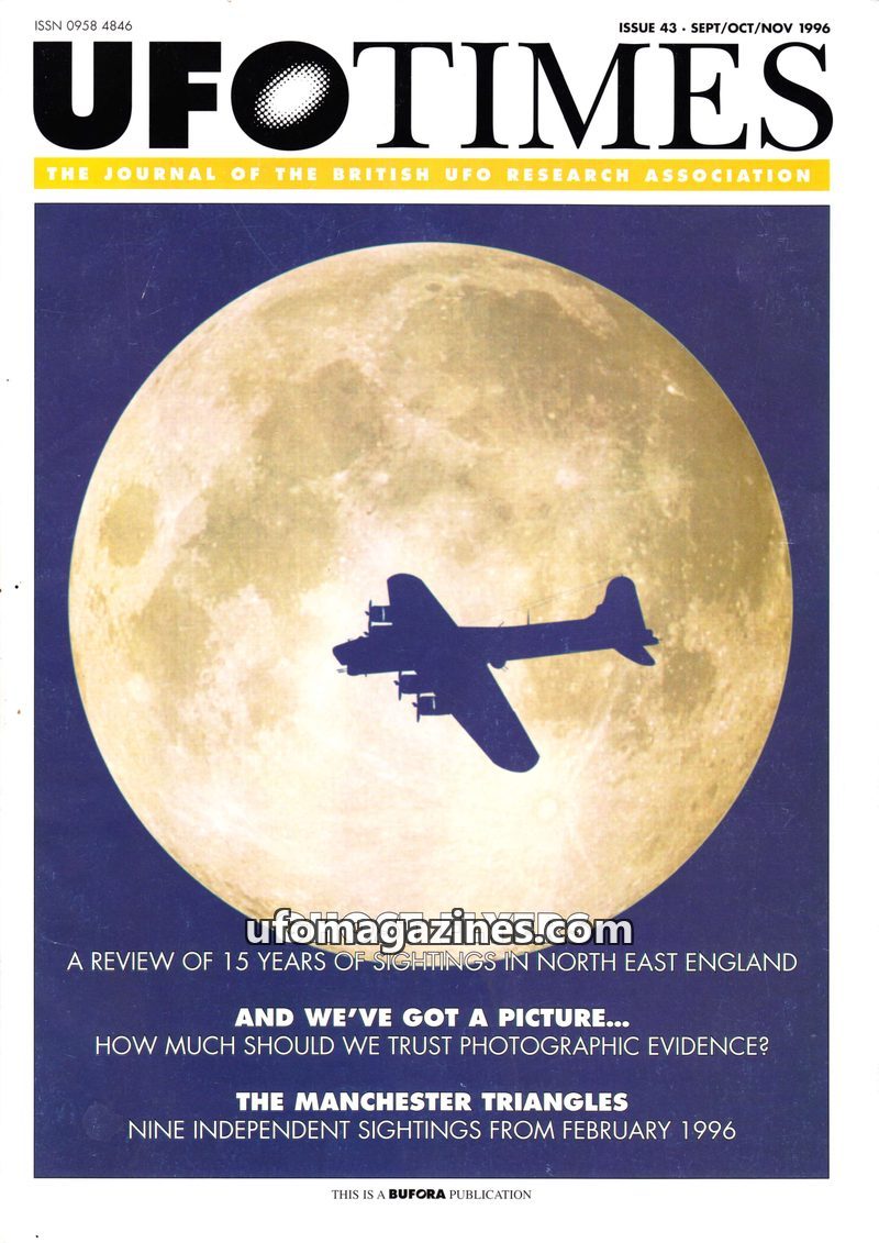 This issue of UFOTIMES covers a range of UFO phenomena, including a review of 'Ghost Flyers' in North East England over 15 years, an examination of photographic evidence, and repor
