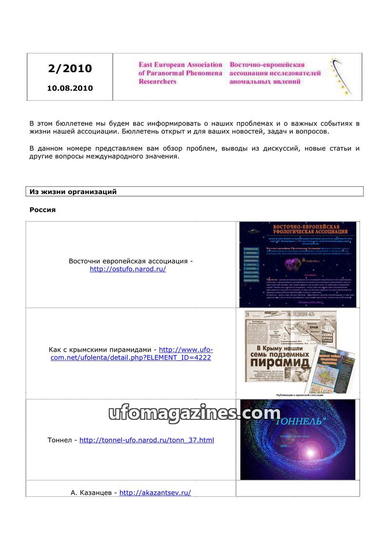 This issue of the bulletin from the East European Association of Paranormal Phenomena Researchers (EEAPPR) aims to inform readers about the association's activities and important e