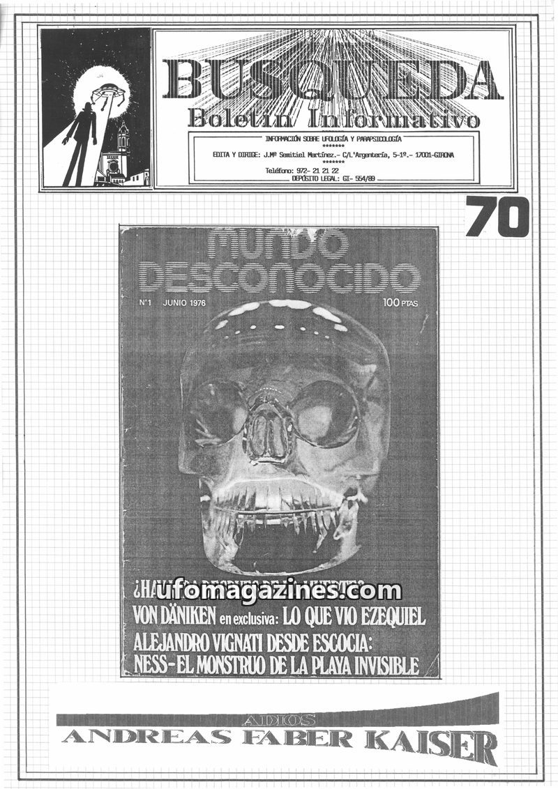 This issue of Busqueda magazine delves into profound questions about life after death, featuring an exclusive interview with Erich von Däniken. It also investigates UFO phenomena,