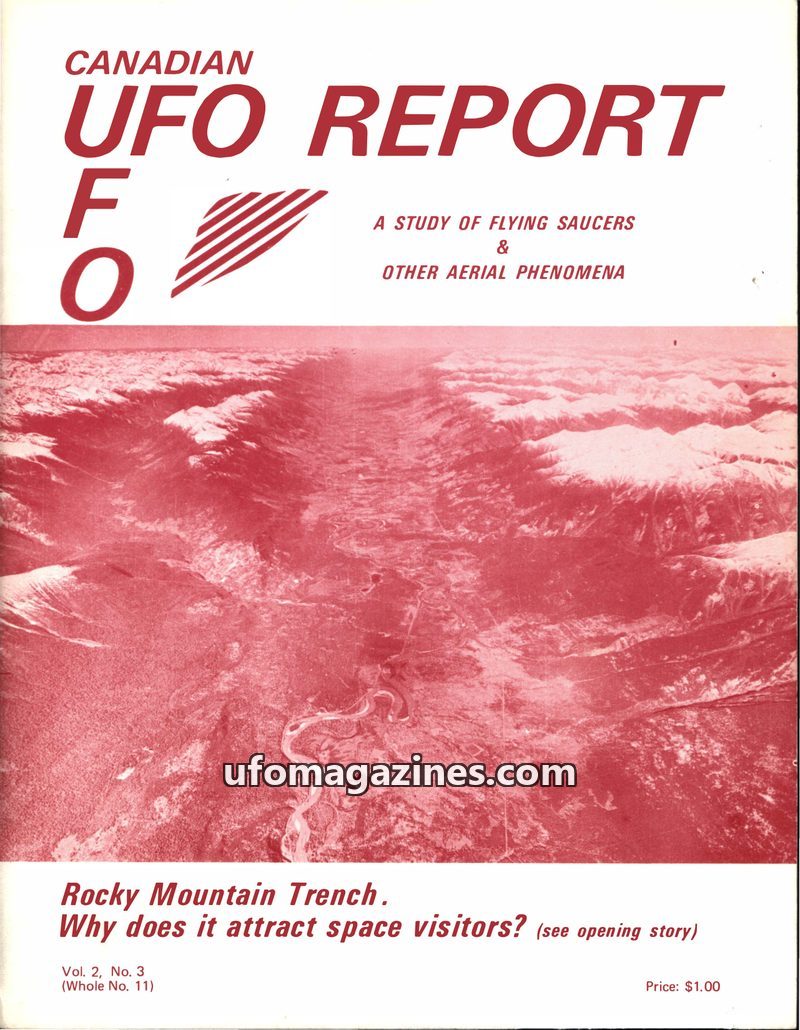 This issue of Canadian UFO Report focuses on the Rocky Mountain Trench as a hotspot for UFO activity, presenting numerous witness accounts from the 1960s and 1970s. The articles de