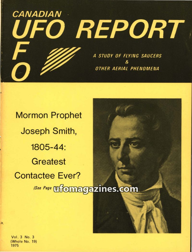 This issue of Canadian UFO Report from 1975 delves into various UFO phenomena. A cover story questions if Mormon Prophet Joseph Smith was the greatest contactee ever. Reports detai
