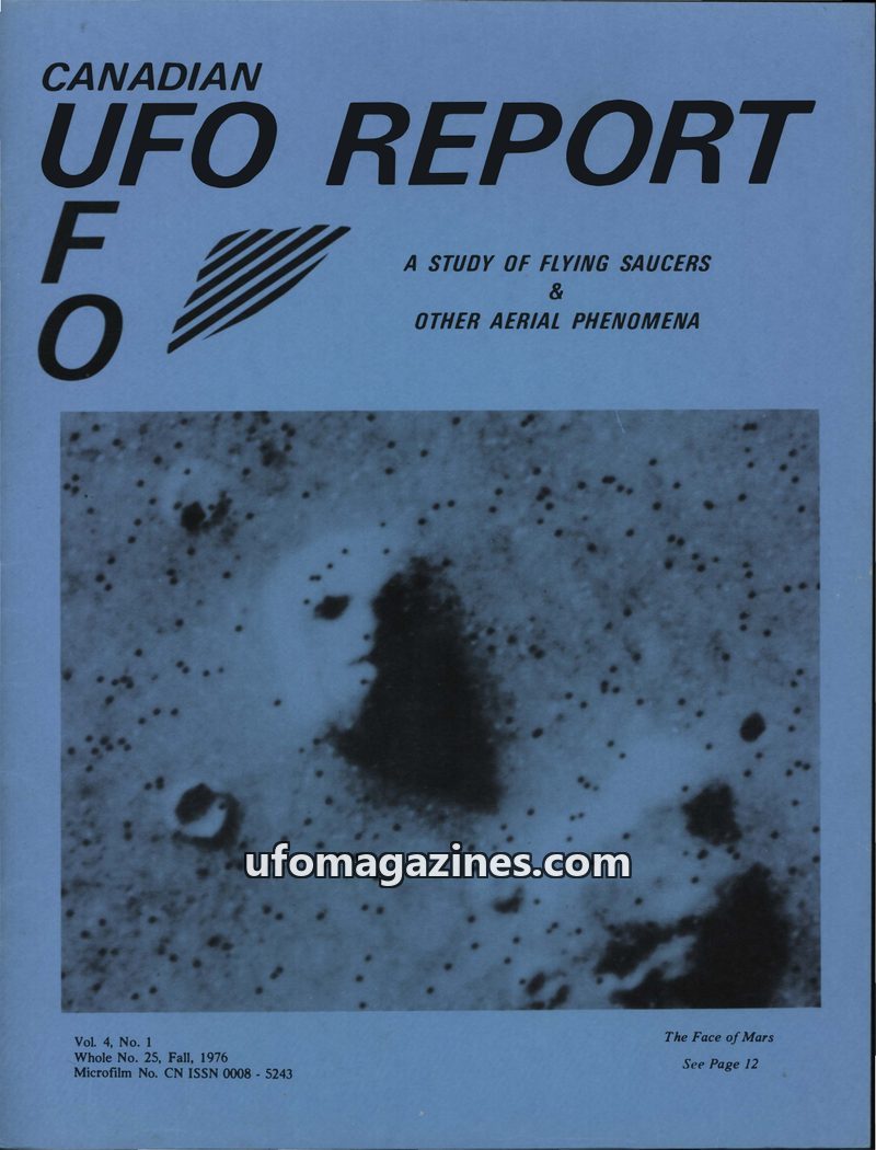 This issue of Canadian UFO Report from Fall 1976 covers a variety of UFO-related topics. It features an editorial reflecting on the success of the Viking 1 Mars landing and NASA's