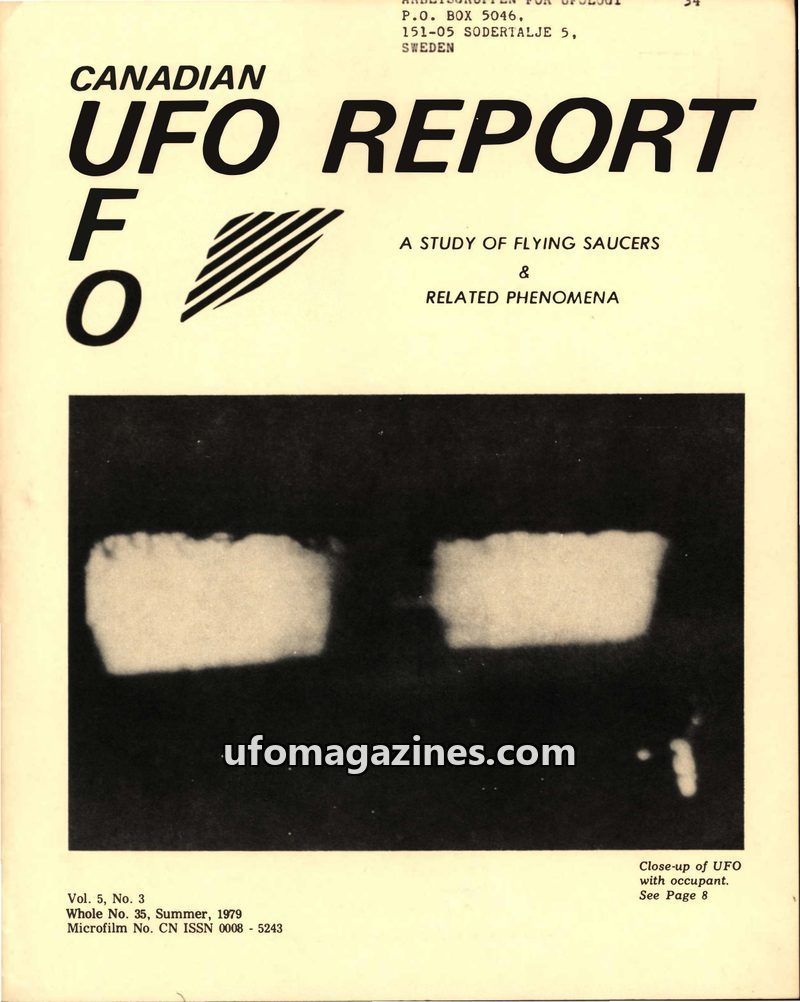 This issue of Canadian UFO Report from Summer 1979 covers various UFO sightings and phenomena from around the world. Articles detail incidents in Brazil, Canada, the USA, and Europ