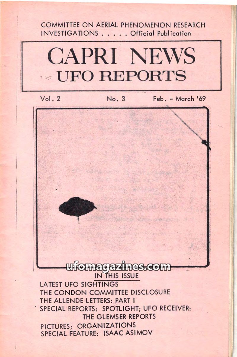 This issue of Capri News UFO Reports from February-March 1969 covers the Condon Committee's findings, which concluded UFOs have earthbound causes and do not represent extraterrestr