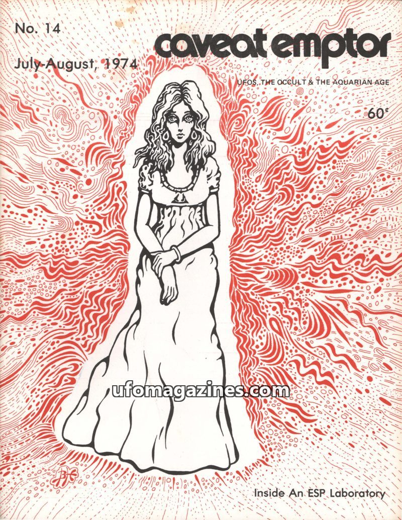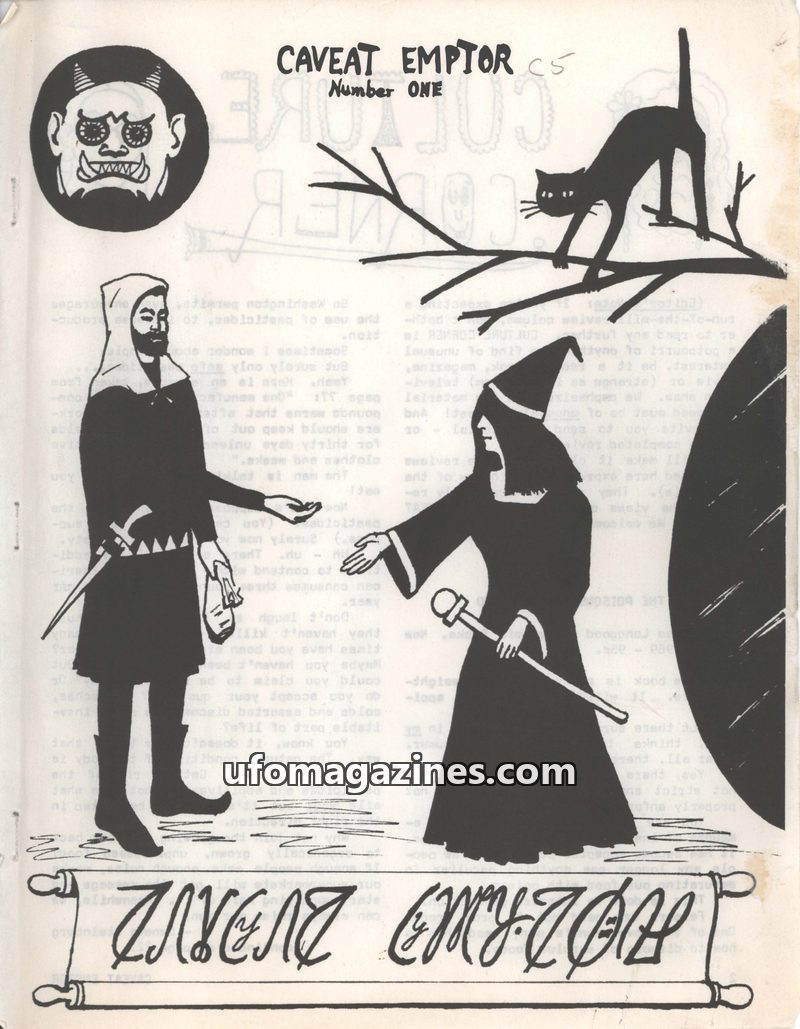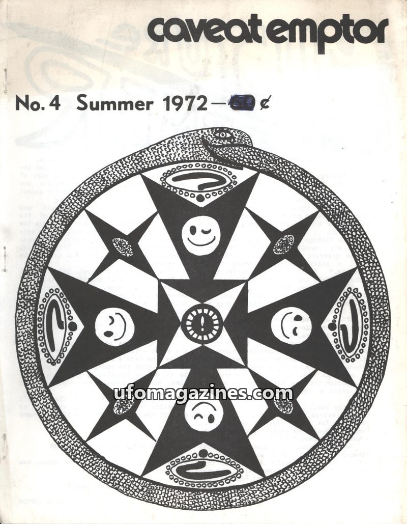 This Summer 1972 issue of Caveat Emptor, Volume 1, No. 4, published quarterly by G & G Enterprises, explores themes of UFOs, mysticism, and witchcraft. It features a review of Marg