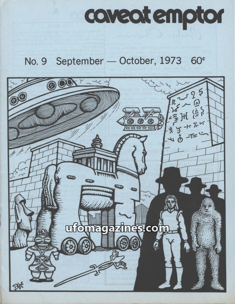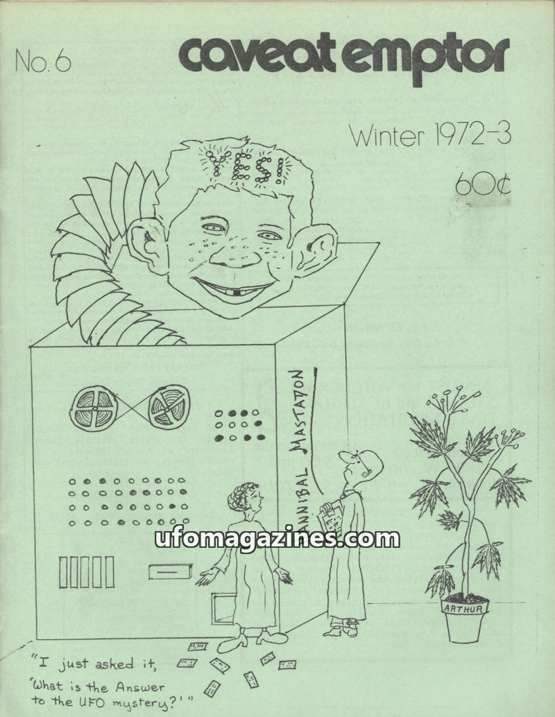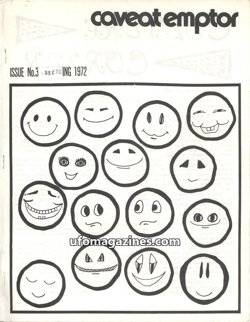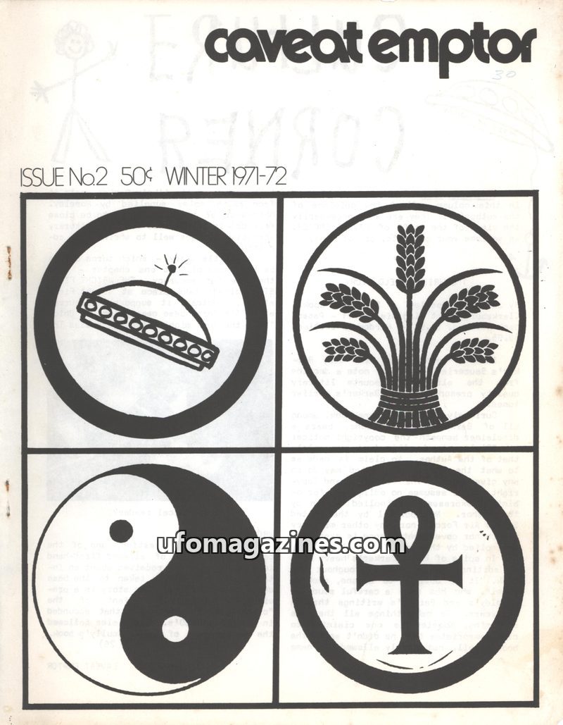 This issue of Caveat Emptor, published Winter 1971-72, explores the historical roots of ufology, tracing its connections to science fiction, occult beliefs, and early investigation