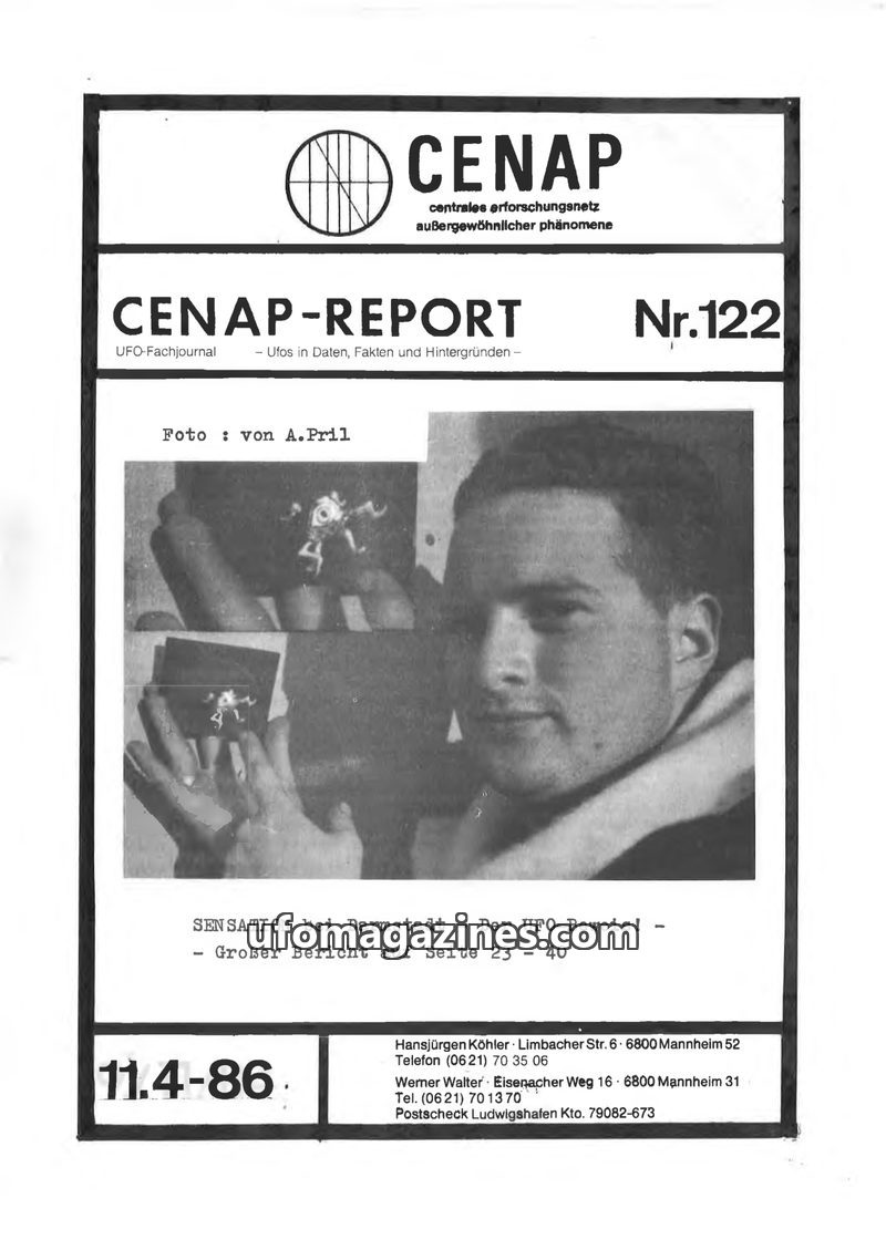 This issue of CENAP-REPORT details a series of UFO sightings in Ludwigshafen, Germany, in April 1988, involving the Glück and Gögdak families. The phenomena were initially describe