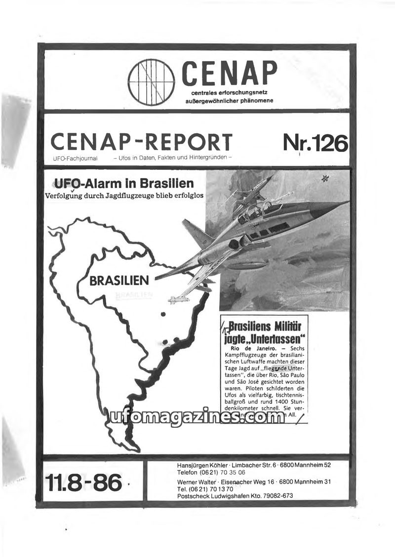 This issue of CENAP-REPORT details UFO sightings in Brazil and Austria during June 1986. In Brazil, military jets pursued unidentified objects. In Austria, police and the army were