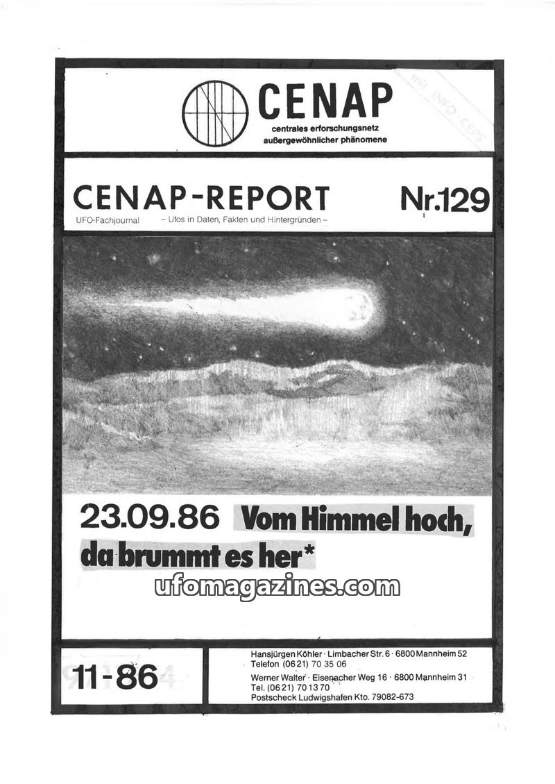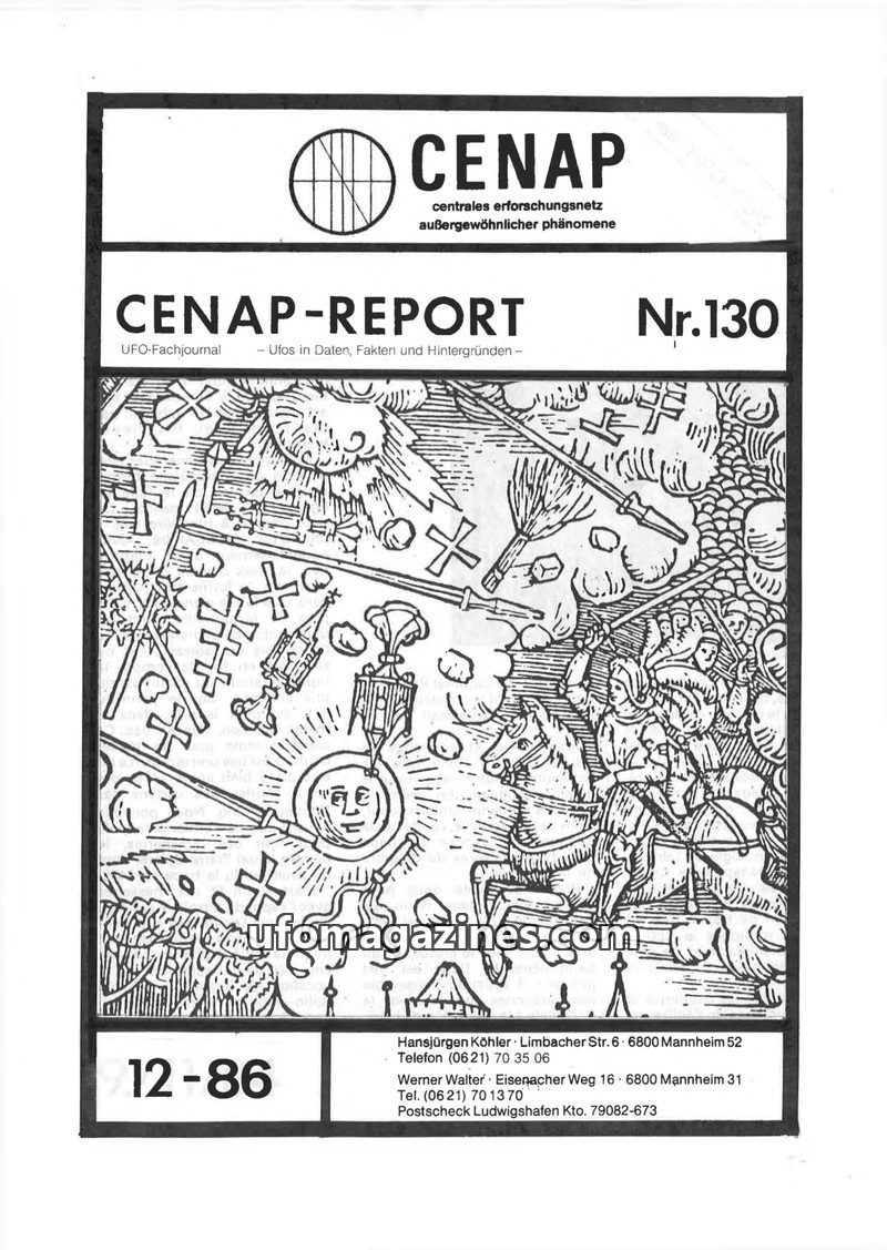 This issue of CENAP-REPORT, published by CENAP-Mannheim, focuses on UFO investigations and the scientific analysis of reported phenomena. It details numerous cases, often debunking