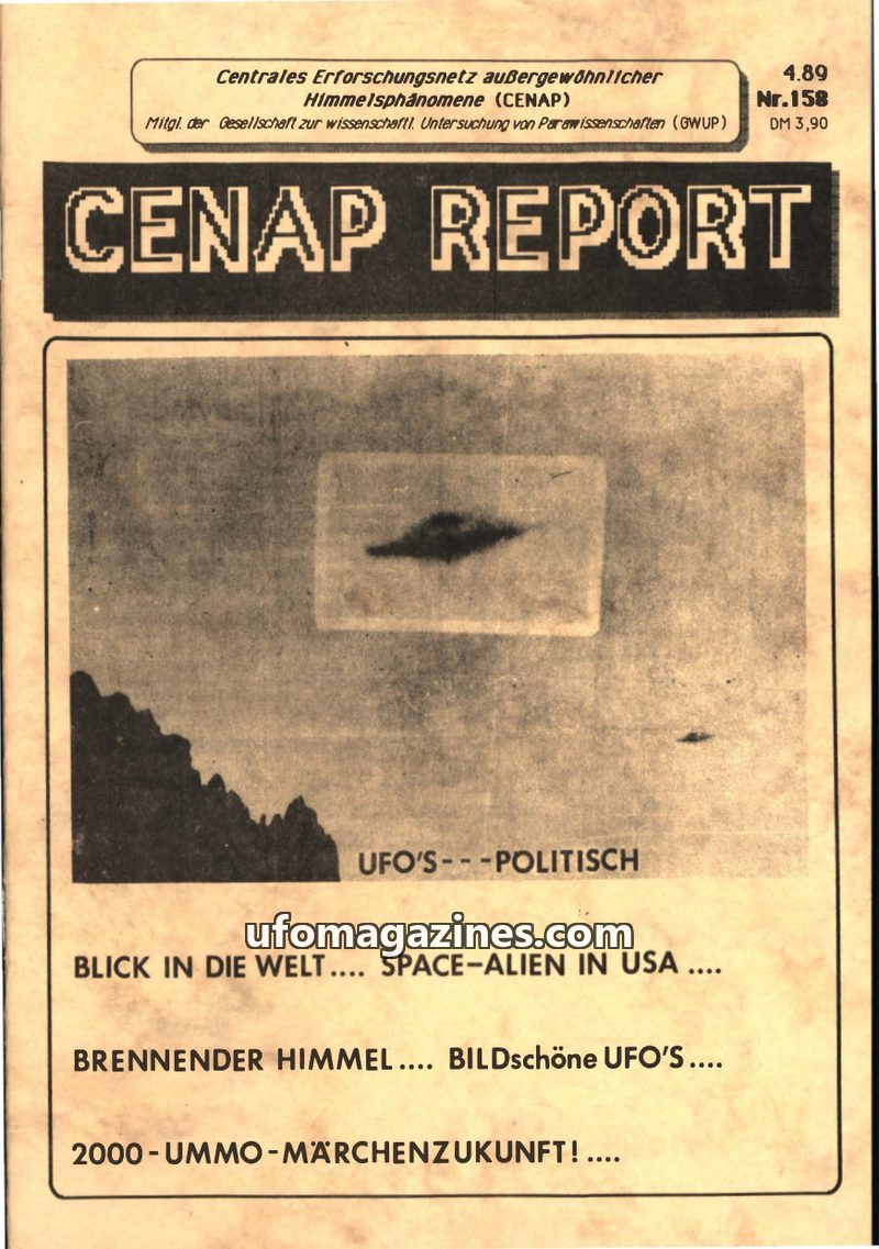 This issue of CENAP REPORT focuses on a UFO sighting in Eupen, Belgium, involving Belgian gendarmes. It critically examines the sensationalist reporting of alleged alien crash inci