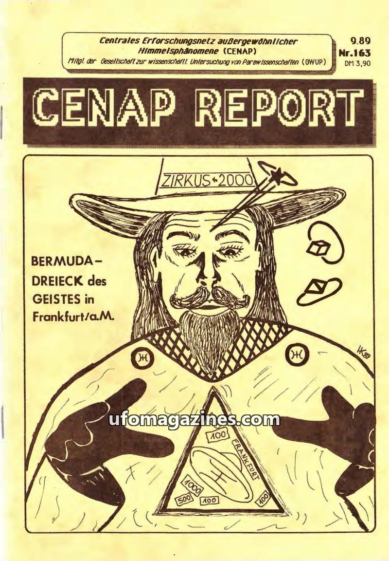 This issue of CENAP REPORT focuses on the 'Bermuda Triangle of the Mind' in Frankfurt, investigating UFO phenomena with a scientific and skeptical approach. CENAP, a private instit