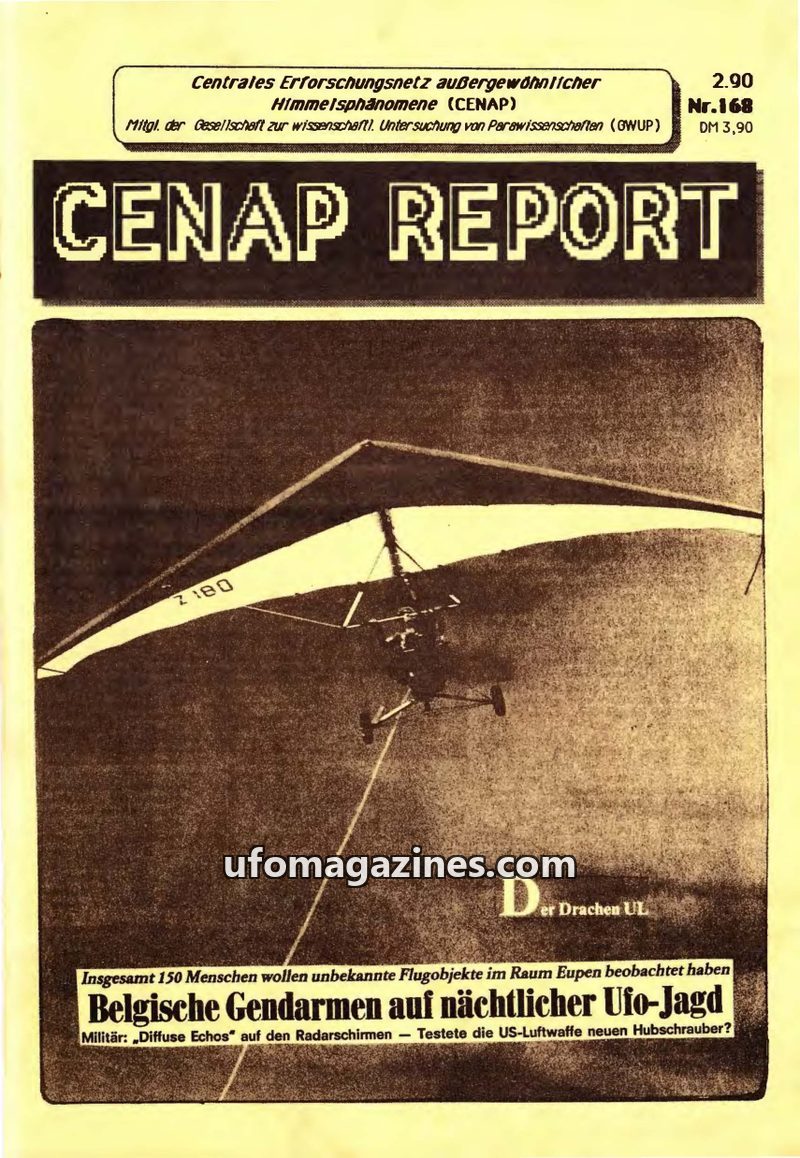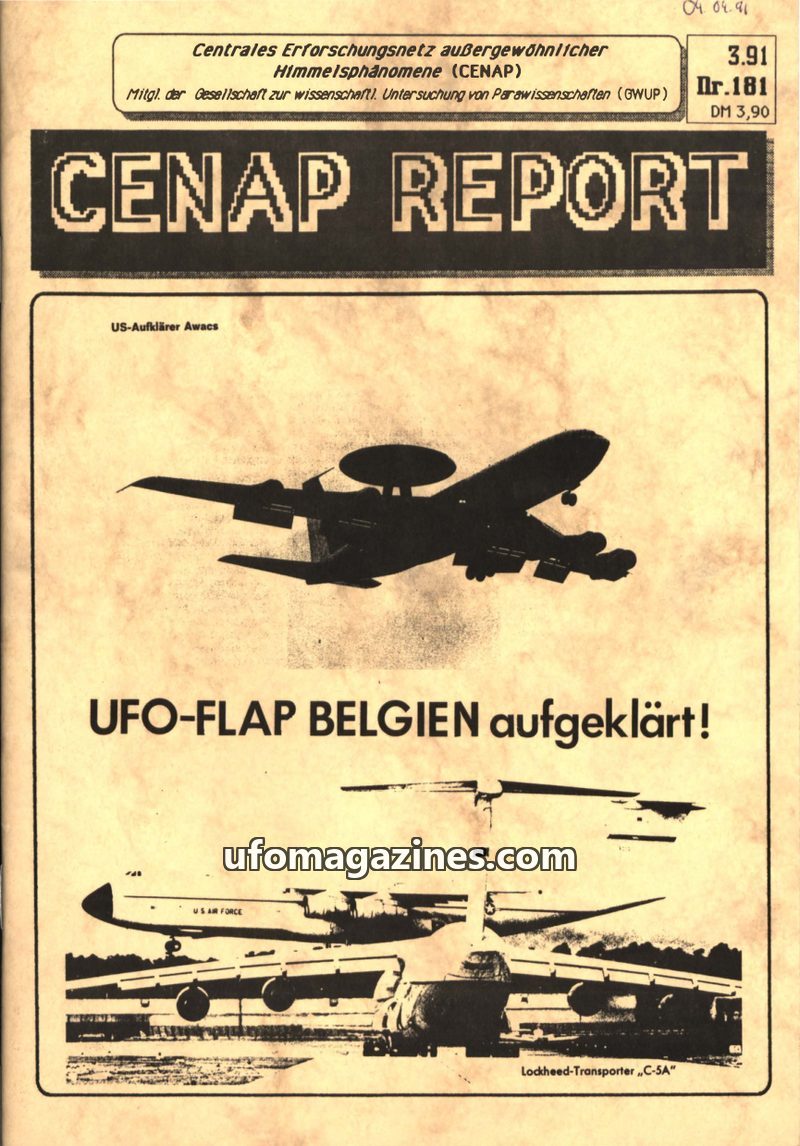 This issue of CENAP REPORT focuses on the Belgian UFO flap of August 1990, investigating numerous sightings of triangular and other craft. The magazine explores potential misidenti