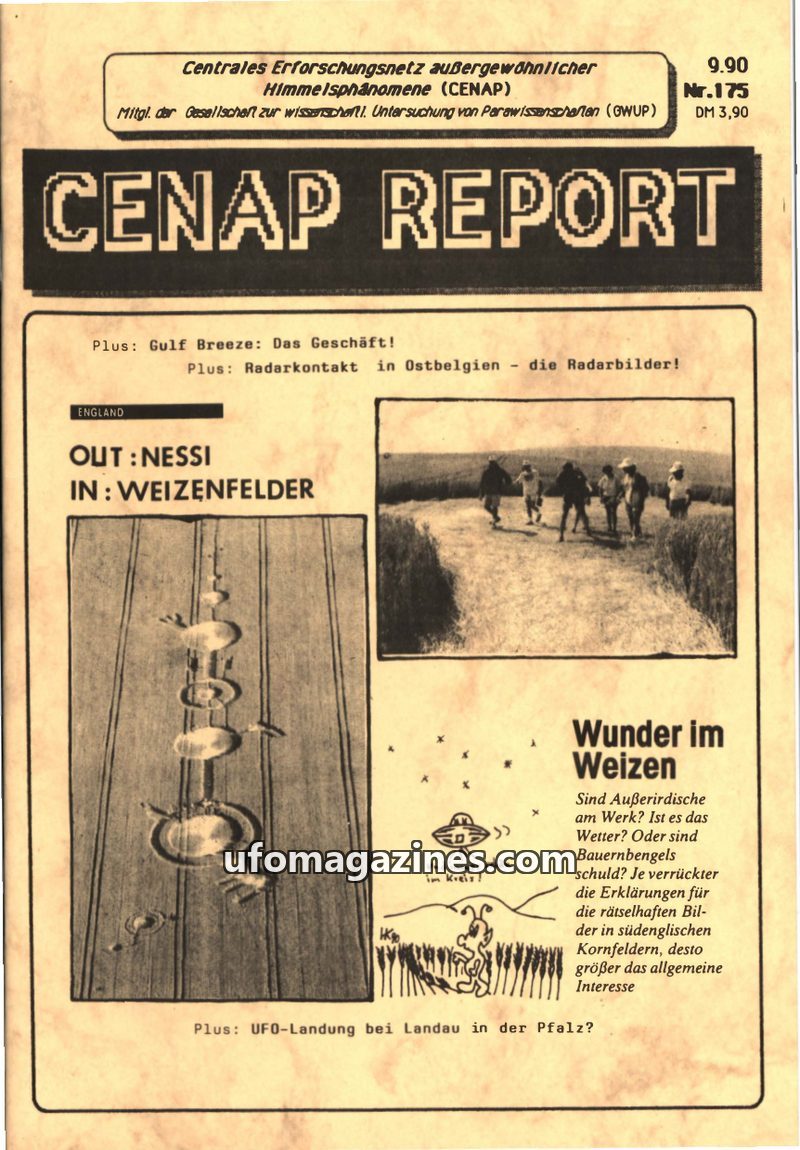 This issue of CENAP REPORT focuses on debunking the mystery of crop circles, particularly those found in England. It highlights that many UFO sightings and phenomena, including cro