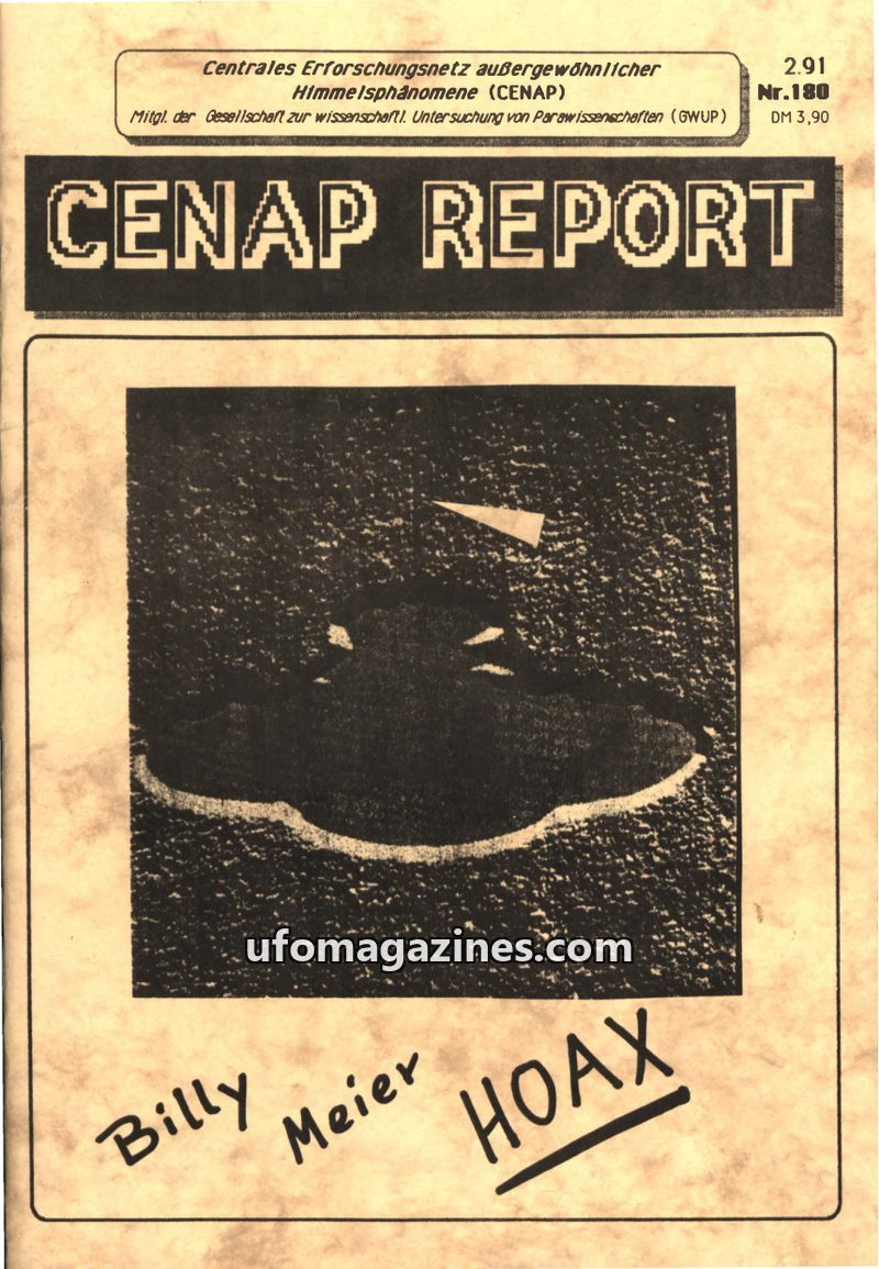 This issue of CENAP REPORT delves into the Billy Meier case, labeling it a hoax and presenting evidence of his alleged use of models. It explores the origins of the UFO phenomenon,