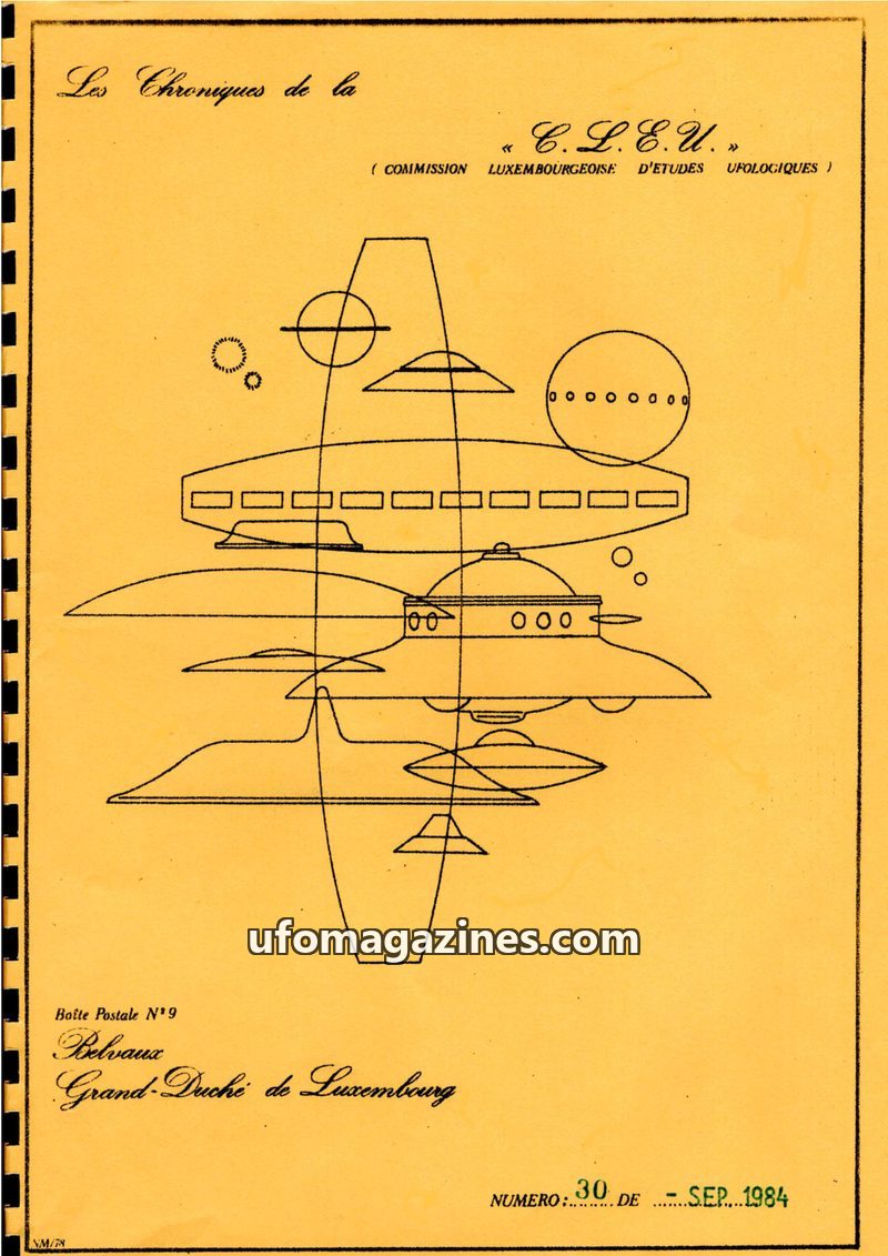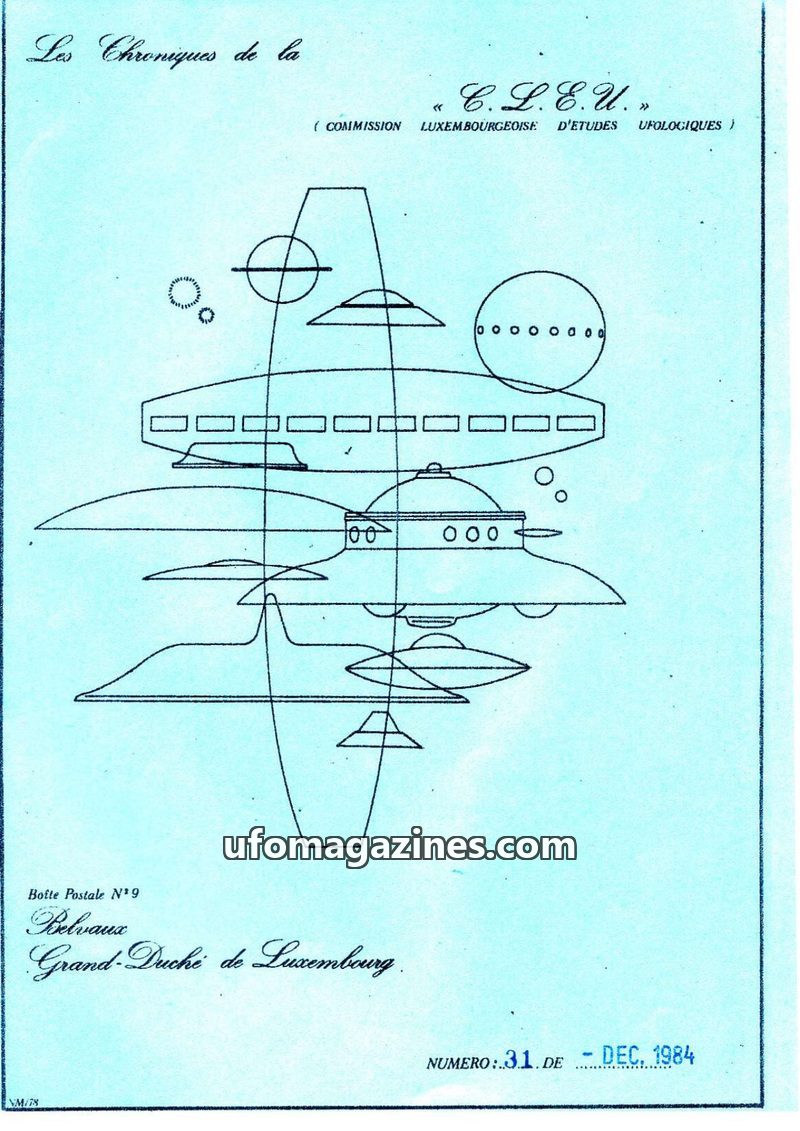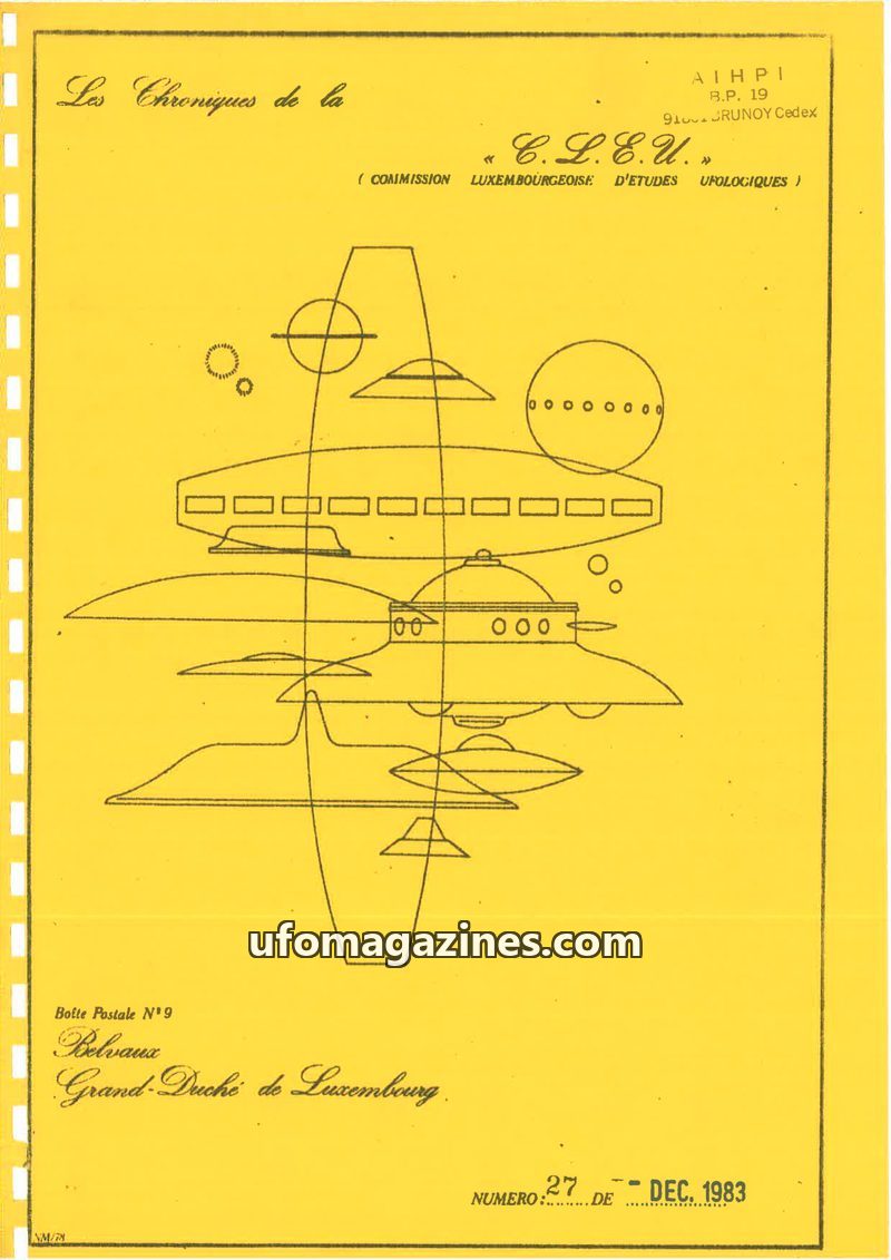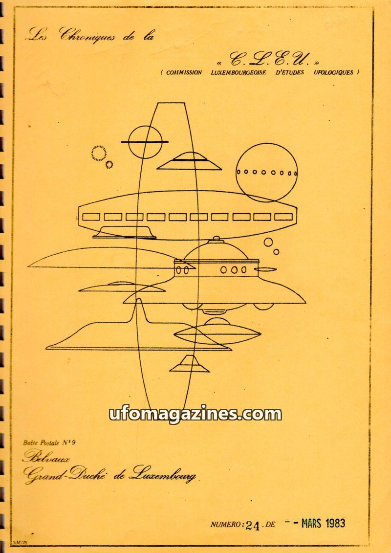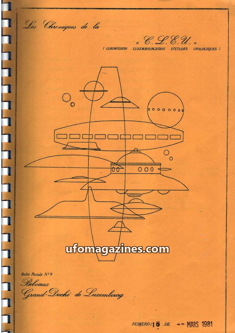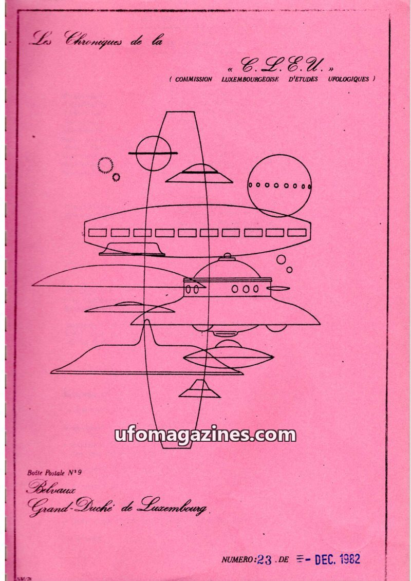 This issue of Les Chroniques de la C.L.E.U. from December 1979 covers UFO activity and investigations in Luxembourg and France. It details the organization's participation in CNEGU