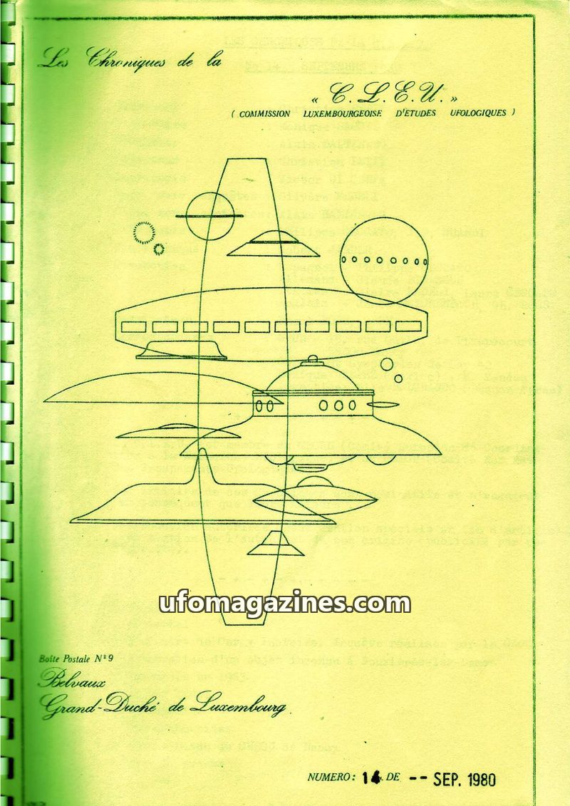 This issue of 'Les Chroniques de la C.L.E.U.' from December 1980 covers a mini UFO wave in Luxembourg during October 1980. The editorial discusses the importance of official cooper