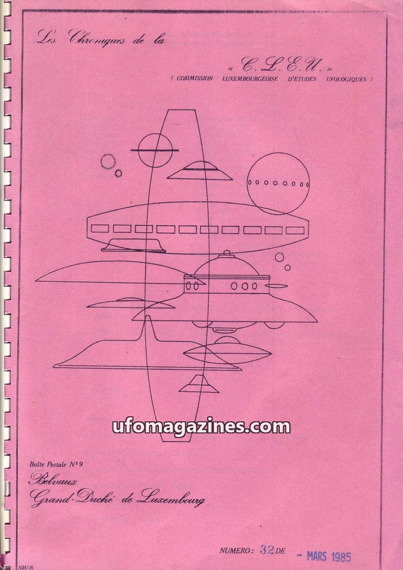 This issue of Les Chroniques de la C.L.E.U. details a UFO sighting near Dahlem, Luxembourg, by two witnesses who described a luminous, ovoid object. It also presents the Code of Et