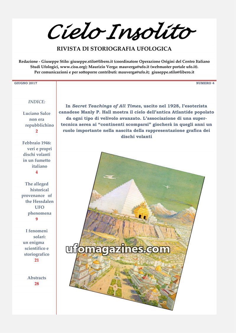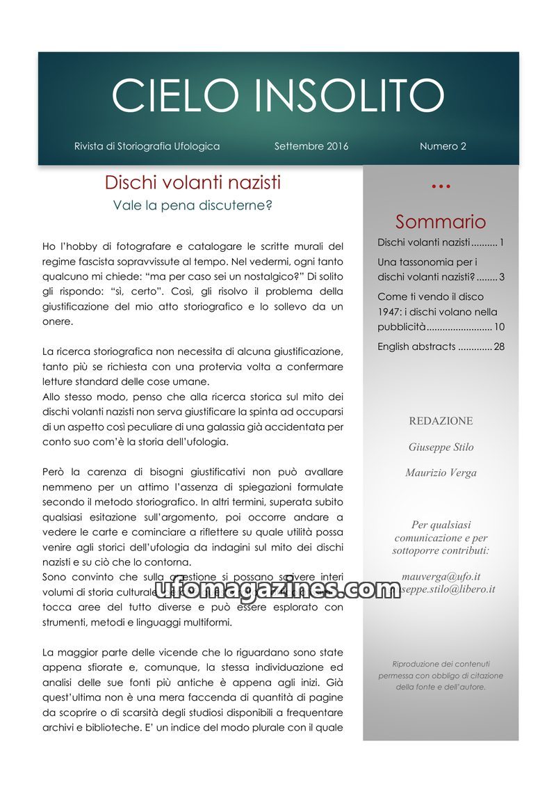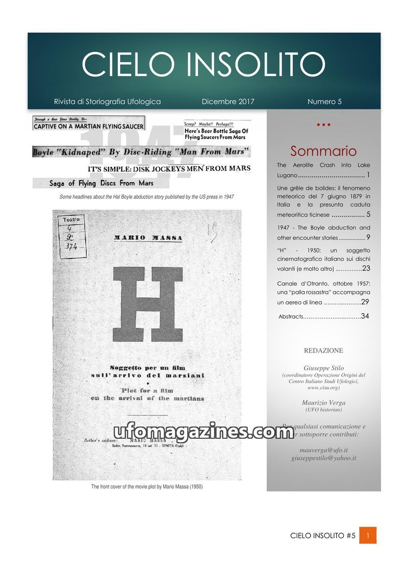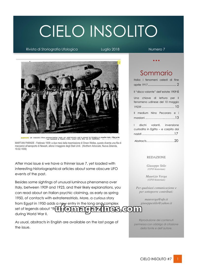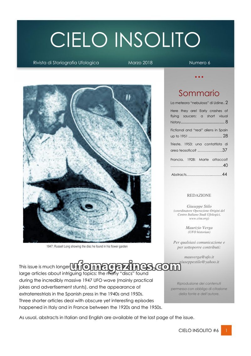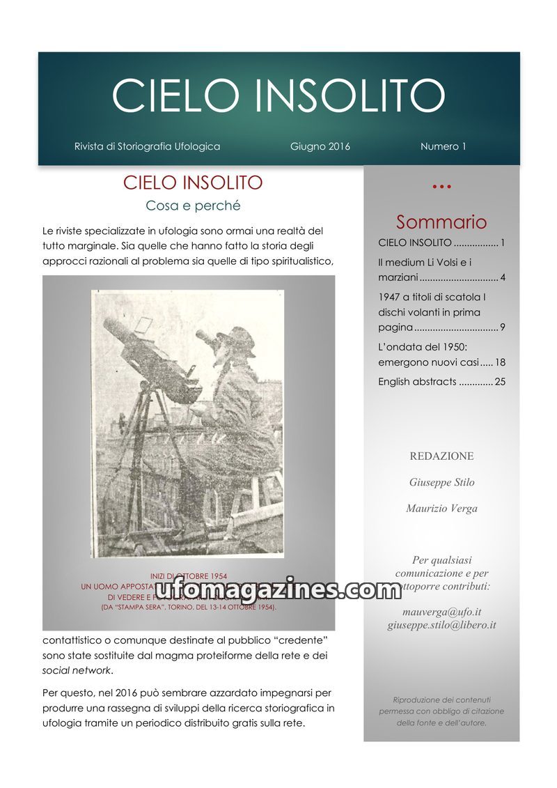 Cielo Insolito #1, launched in June 2016, is a new online periodical dedicated to ufology historiography, aiming to provide detailed analyses of historical UFO research. The inaugu