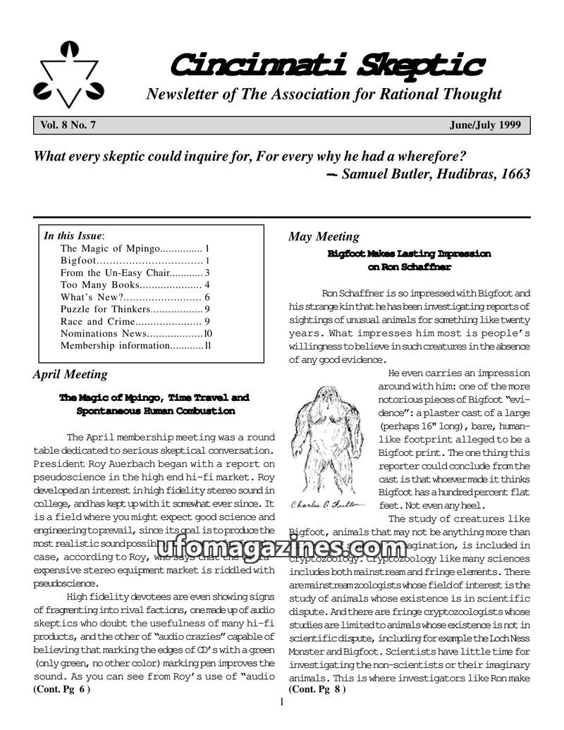 Cincinnati Skeptic - Vol 01 No 01 - 1991