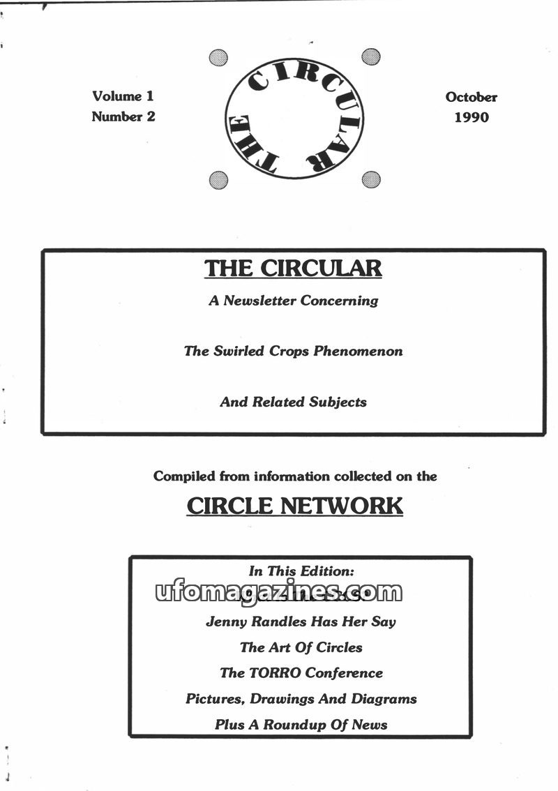 This issue of The Circular, Volume 1, Number 2 from October 1990, focuses on the crop circle phenomenon. It introduces the Centre For Crop Circle Studies (CCCS) and its president,
