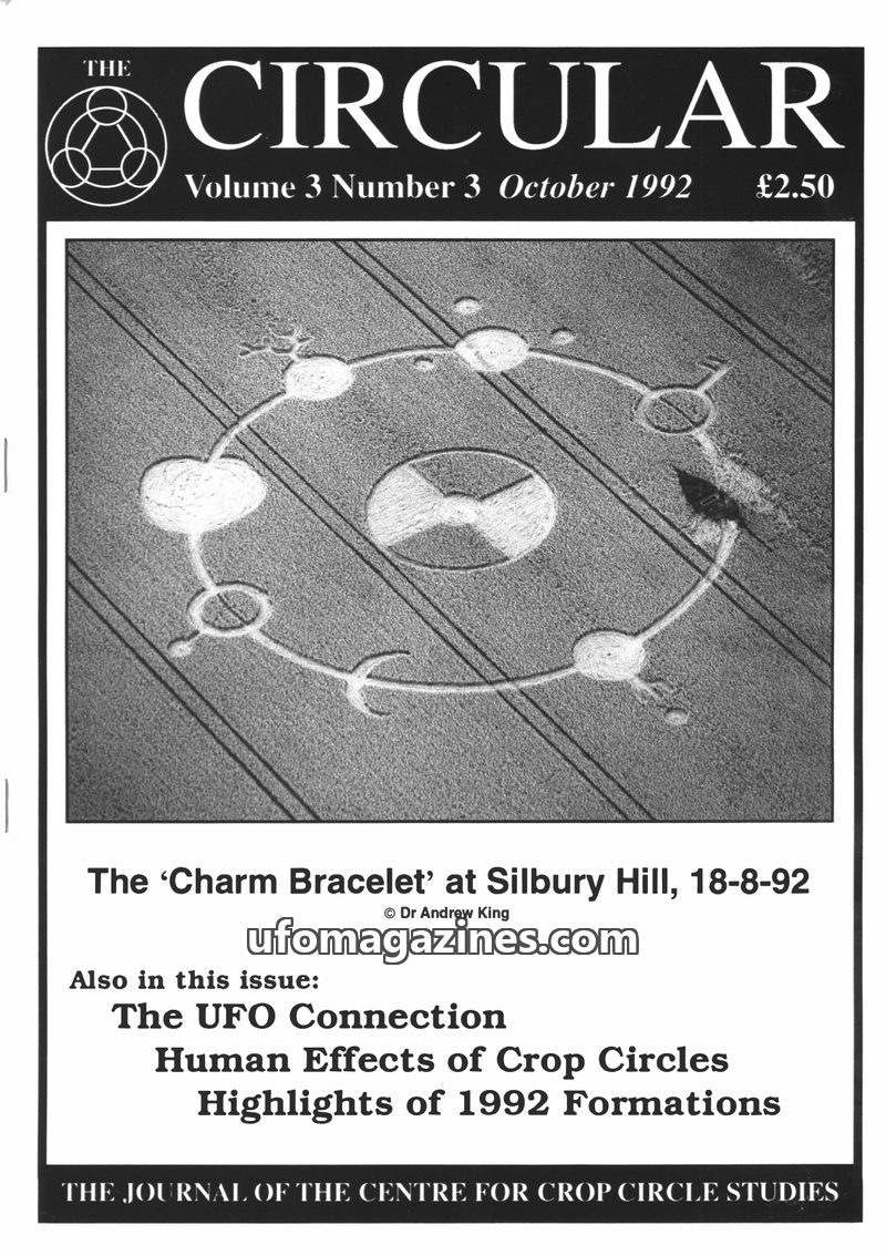 This issue of The Circular magazine delves into the potential links between UFO phenomena and crop circles, featuring articles on sightings, human effects, and the 1992 formation s