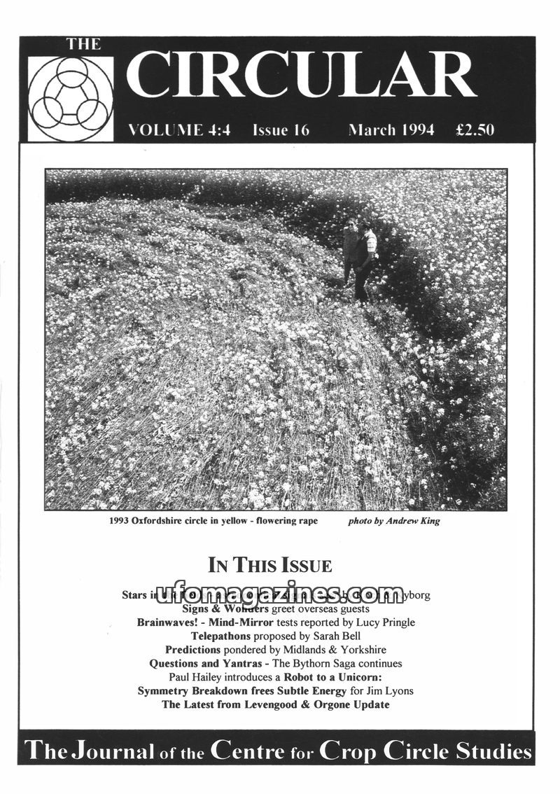 This issue of The Circular, published Winter 1994-5, presents a comprehensive list of 1994 British crop circles and explores various scientific and psychological aspects of the phe