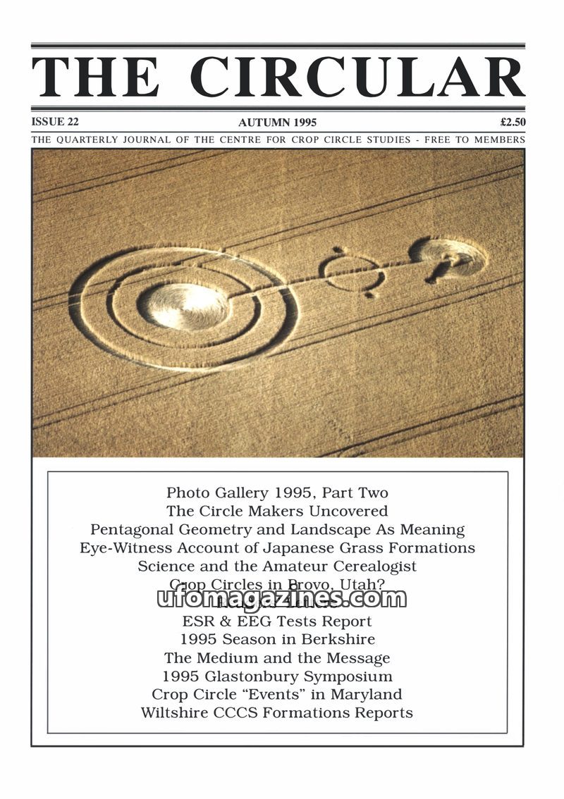 This issue of The Circular (Autumn 1995) delves into the geometric and landscape meanings of crop circles, with a focus on pentagonal geometry and alignments with historical sites