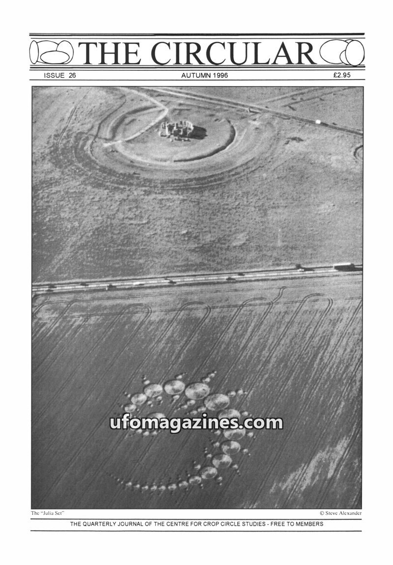 The Autumn 1996 issue of The Circular highlights the exceptional 1996 crop circle season, with formations like the "Julia Set" near Stonehenge and the "DNA" formation at Alton Barn