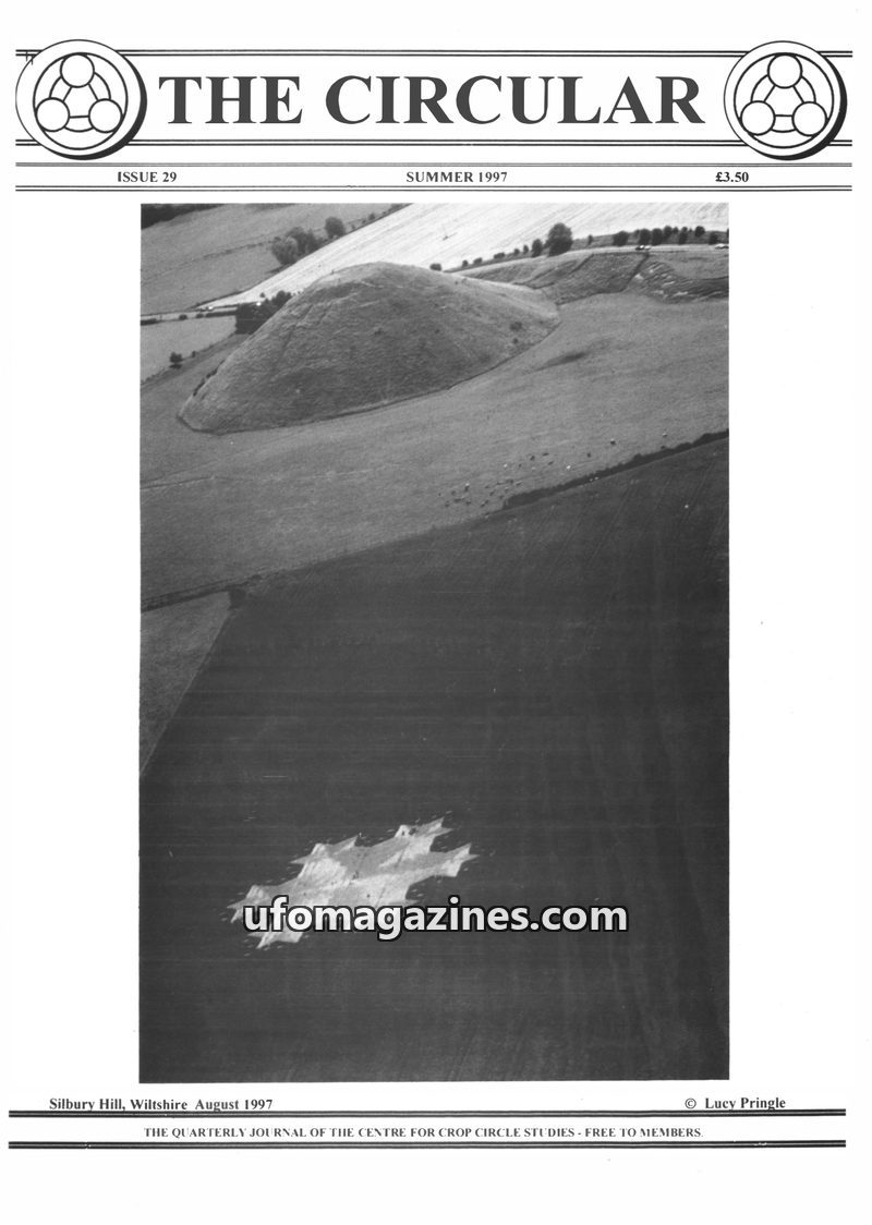 This issue of The Circular, Summer 1997, delves into crop circle phenomena with reports on formations like the Koch Snowflake II and a 1918 Kent circle. It features discussions on