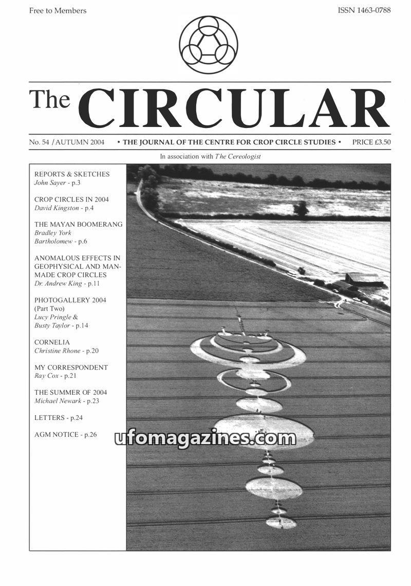 This issue of The Circular, the journal of the Centre for Crop Circle Studies (CCCS), announces its proposed dissolution due to declining membership and the prevalence of hoaxes. T