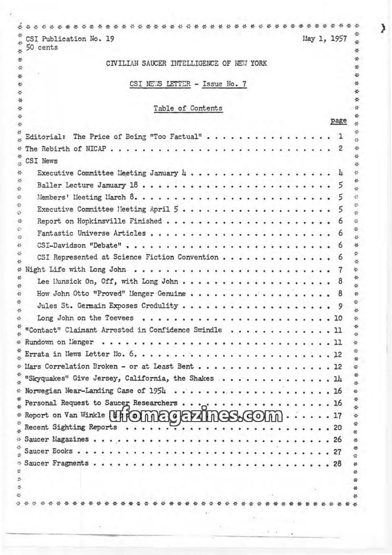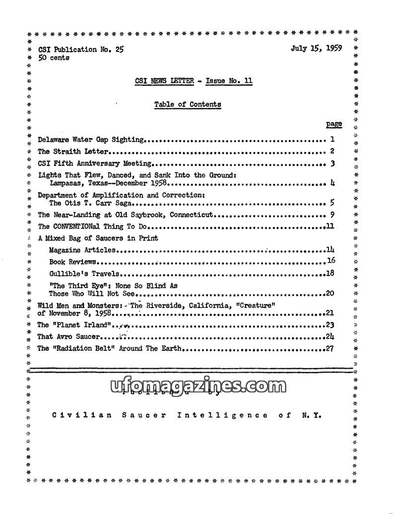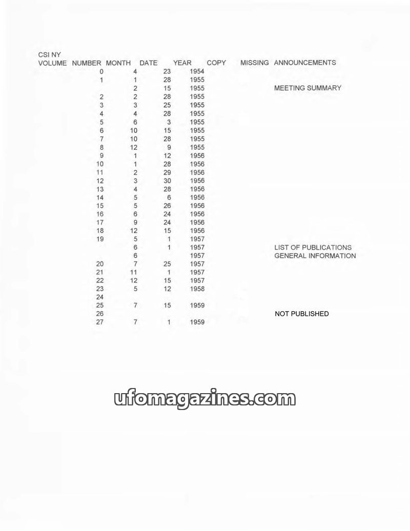 0 - Index Civlilian Saucer Intellligence of New York