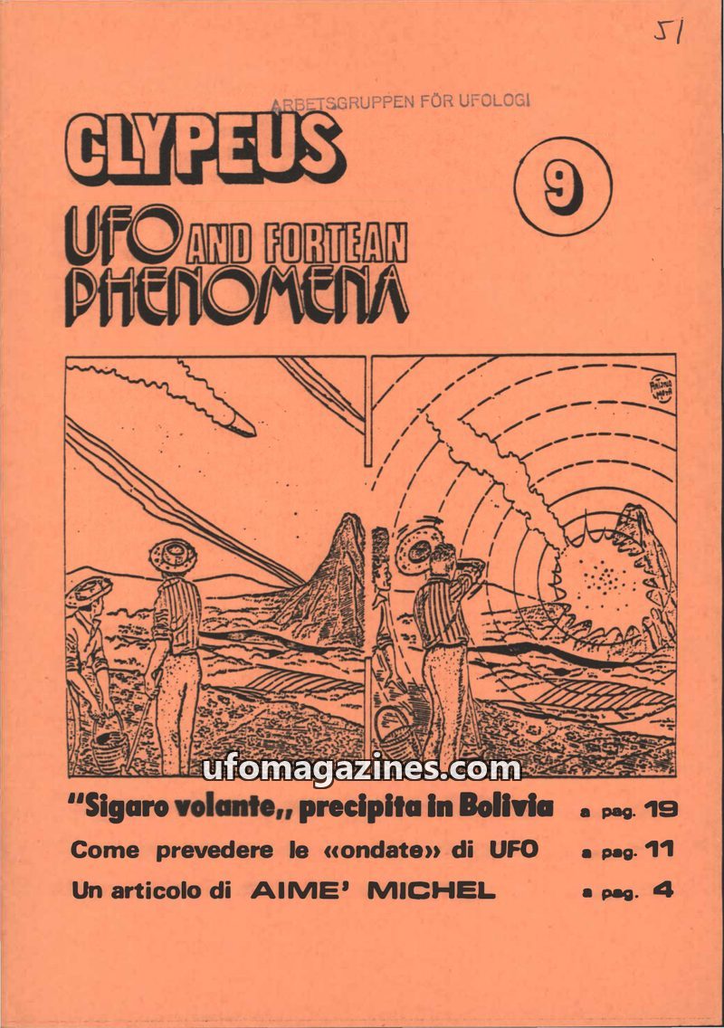 This issue of Clypeus focuses on UFO phenomena and research, with articles discussing a UFO crash in Bolivia, UFO wave predictions, and a theoretical law of ufology. It includes a