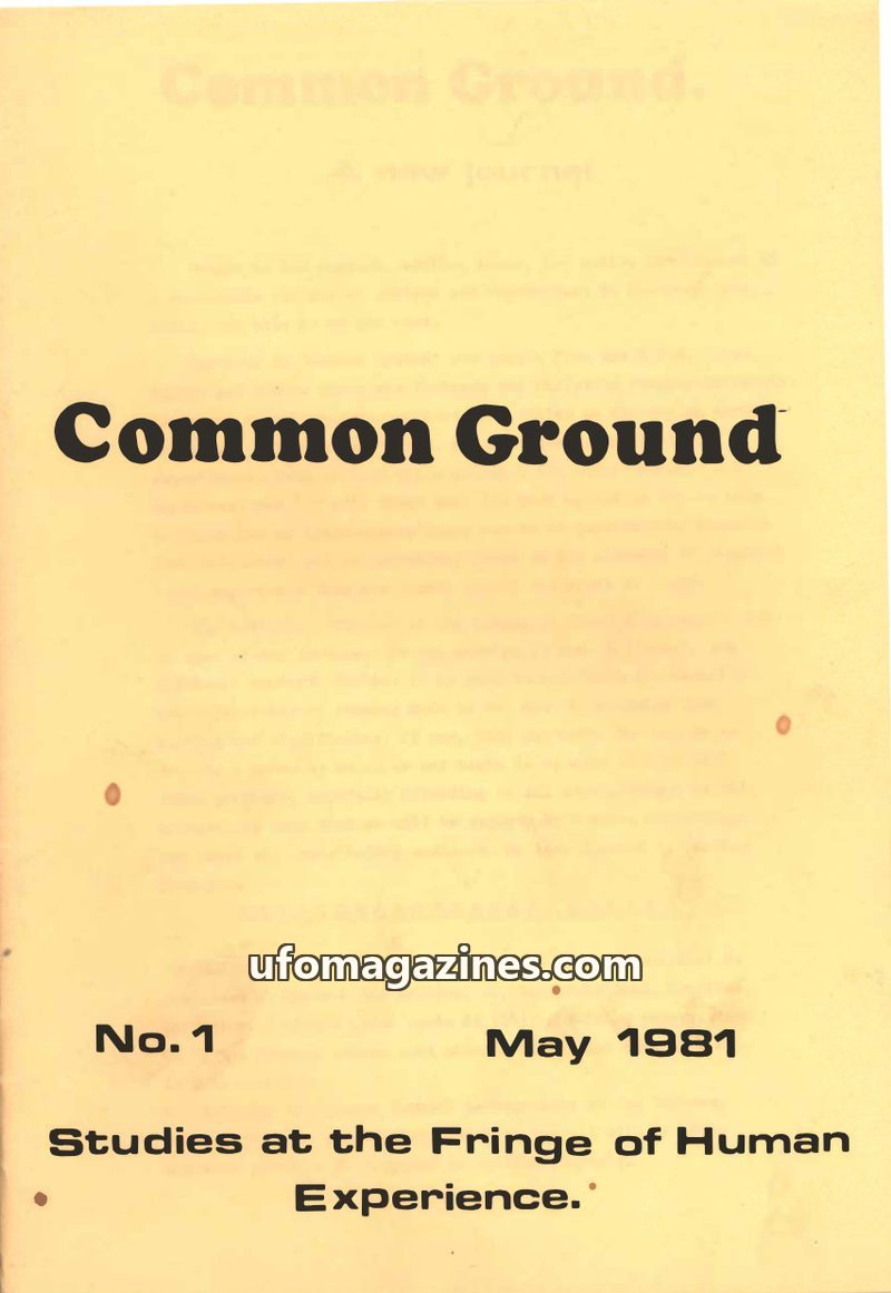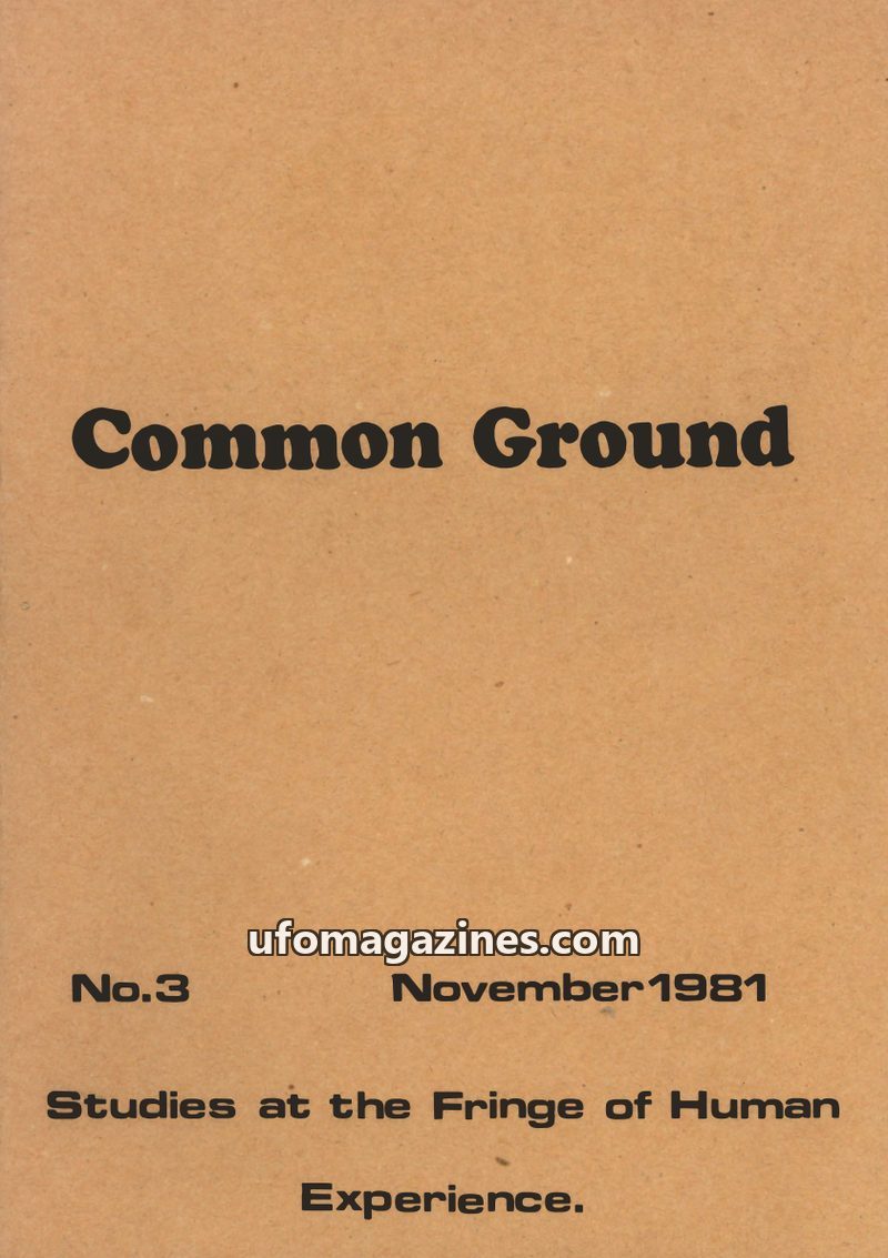 This inaugural issue of Common Ground, subtitled 'Studies at the Fringe of Human Experience,' aims to provide an inter-disciplinary source of information on paranormal research. It
