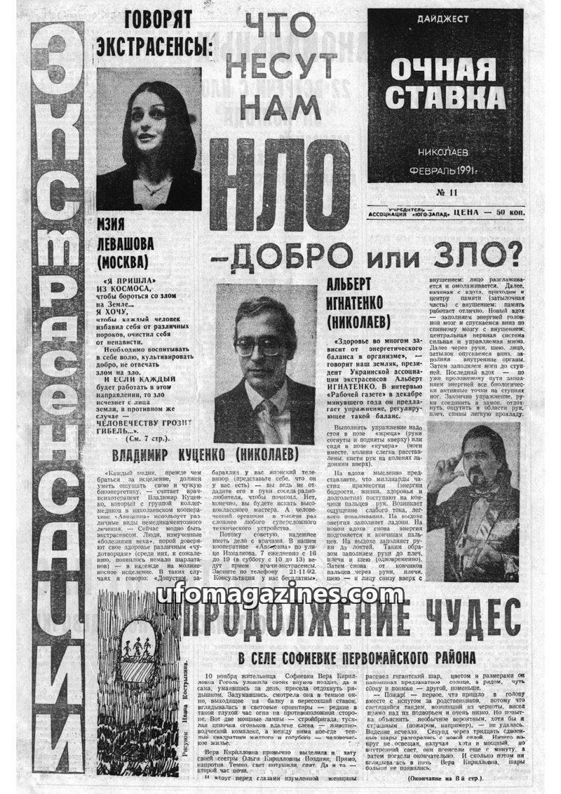 This issue of 'Ochnaya Stavka' delves into various anomalous phenomena, including numerous UFO sightings from around the world, with detailed accounts from witnesses and researcher