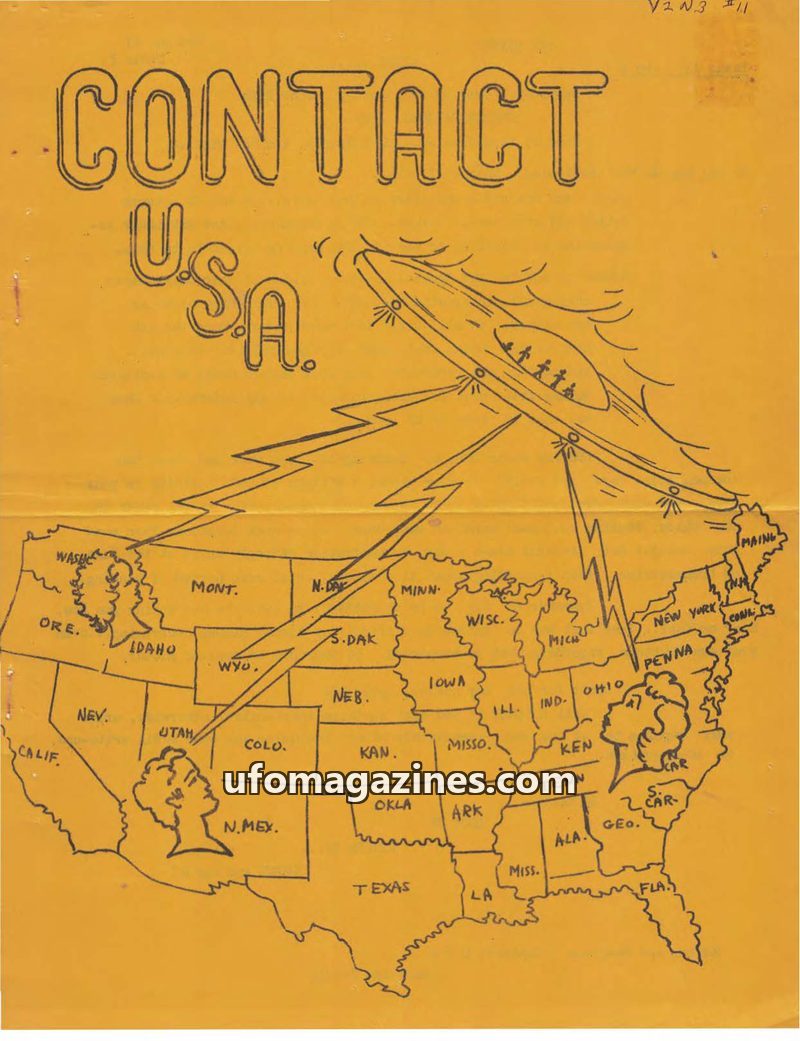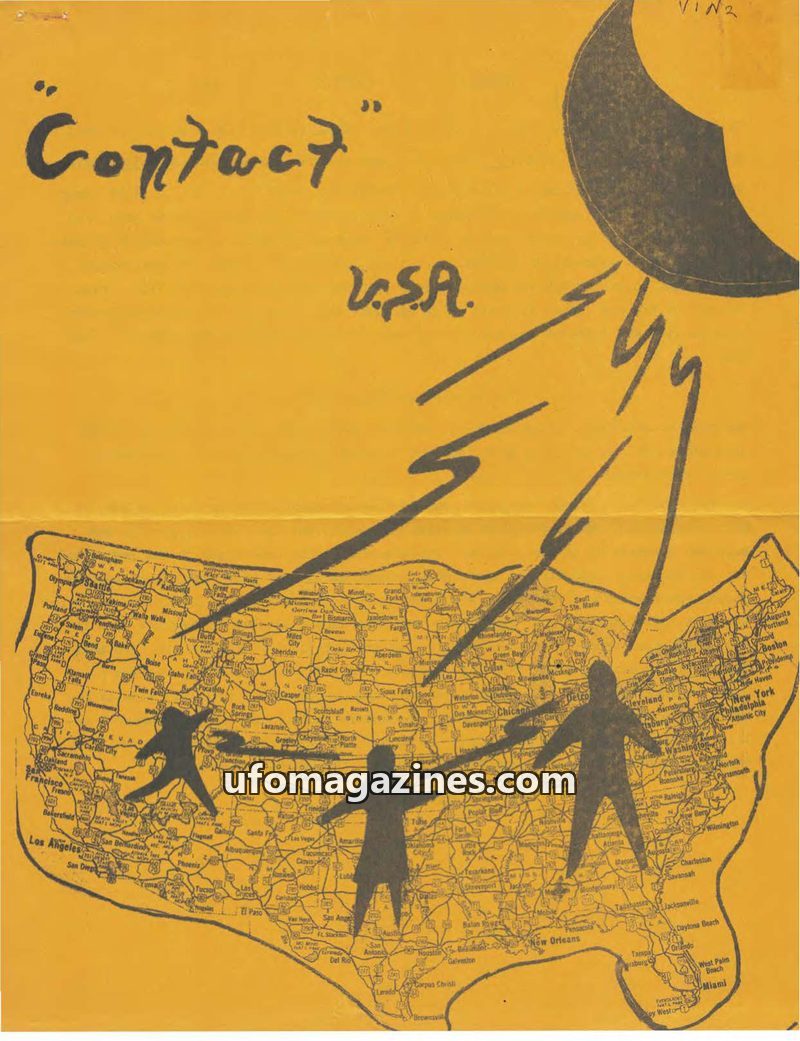 This issue of 'Contact U.S.A.' details numerous UFO sightings and unusual aerial phenomena reported across the United States during the early 1970s. Reports include descriptions of